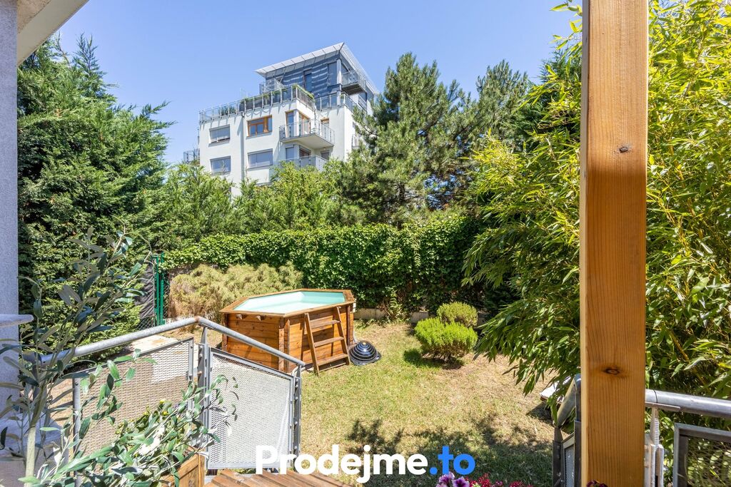 Tady si můžete užívat volný čas venku, aniž byste opustili domov. Terasa díky své velikosti 41,68 m2 nabídne místo pro zahradní posezení, gril i okrasné květiny. Dokonalost podtrhuje dřevěná pergola s látkovou markýzou a vstup na vlastní předzahrádku. Ta má 65 m2, je oplocená a porostlá zelení poskytující soukromí. Příjemným bonusem je bazén s průměrem 2,9 m včetně filtrace a solinátoru.