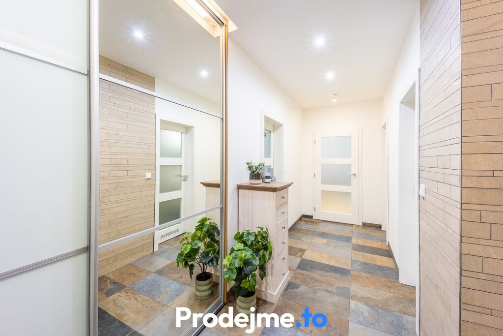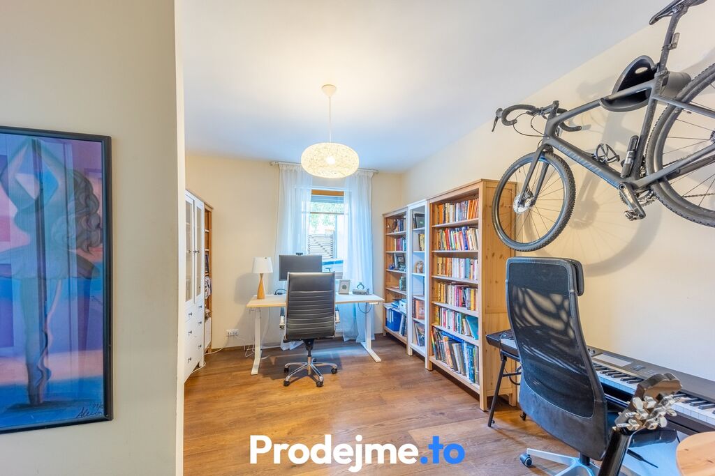 Jako celek ale funguje skvěle, uznejte sami. Vše začíná v obývacím pokoji s velkou kuchyňskou linkou a ostrůvkem. Díky francouzským oknům a vstupům na terasu i do předzahrádky je celý prostor naplněný sluncem. Příjemnou atmosféru díky dostatku denního světla si užijete také v dětském pokoji a ložnici. V té vás potěší vlastní vstup na terasu. Klid na práci vám dopřeje pracovna, kterou ale můžete v případě potřeby snadno využít jako další dětský pokoj. Vkusná koupelna disponuje 2 umyvadly, sprchou a rohovou vanou. Pračku se sušičkou a potřebami pro úklid umístíte do praktické komory. Toalety jsou k dispozici dvě.