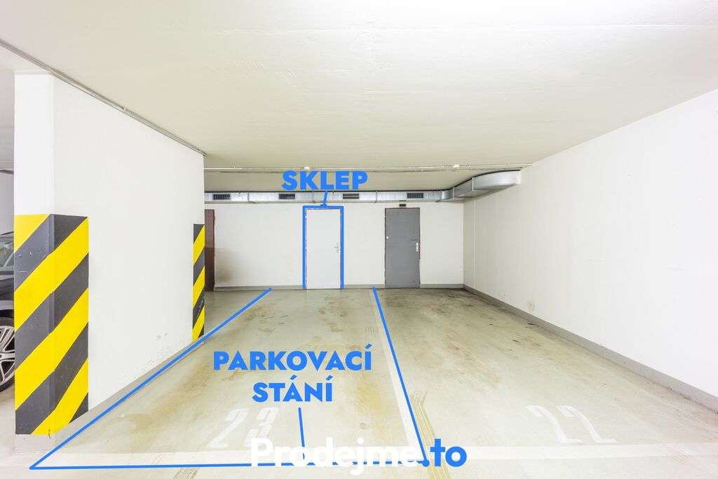Úložné prostory zajišťují vestavěné skříně. Další nezbytnosti uložíte ve vlastním sklepě o velikosti 2 m2. Ten je navíc umístěný přímo vedle vašeho vlastního garážového stání. K dispozici je i společná kolárna.
