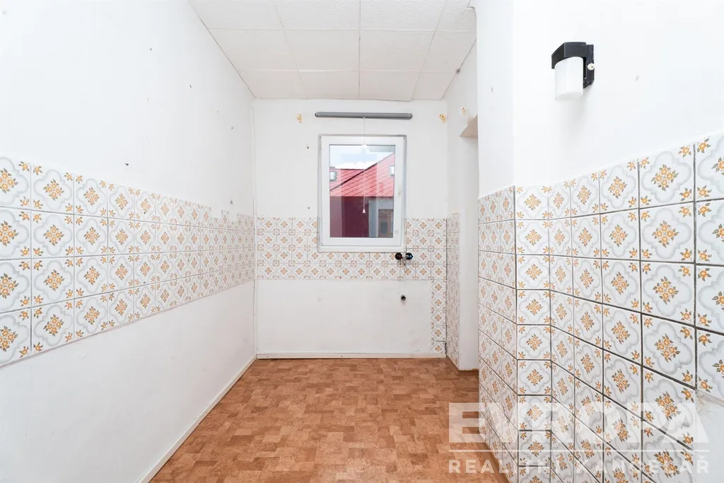 V prvním N.P. jsou 2 místnosti, obývák, kuchyň, WC, koupelna, spíž a předsazená předsíň, z které se vchází do chodby spojené s dřeveným původním schodištěm, která propojuje všechny místnosti.