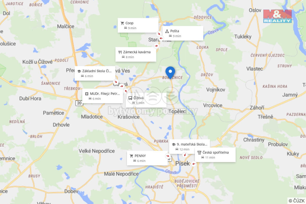 Nabízíme udržovaný stavební pozemek 938 m² v malebné části Čížová–Borečnice. Územní plán umožňuje výstavbu venkovského RD či rekreačního domu. Inženýrské sítě: obecní vodovod na hranici (napojení schváleno starostou), elektřina v řešení – umístění sloupku se finalizuje. Odpady: vhodná vlastní ČOV; obecní kanalizace je zakreslena v územním plánu. Příjezdová cesta je povolena, k dispozici je kompletní projekt schválený dopravním inspektorátem. Parcela nabízí dost místa na dům, zahradu i klidnou relaxaci – skvělý prostor pro rodinu, hobby i nenáročnou údržbu. Minutu chůze od pozemku je zastávka, kam zajíždí školní autobus. Lokalita zaujme naprostým klidem, minimálním provozem a okolní přírodou; ideální pro ty, kdo chtějí žít pomalu a kvalitně. Písek s plnou občanskou vybaveností je 5 km/cca 5 min autem, Praha pohodlně do necelé hodiny. Online nákupy z domova – do lokality zavážejí rozvozové služby potravin. Skvělá investice i místo pro život.