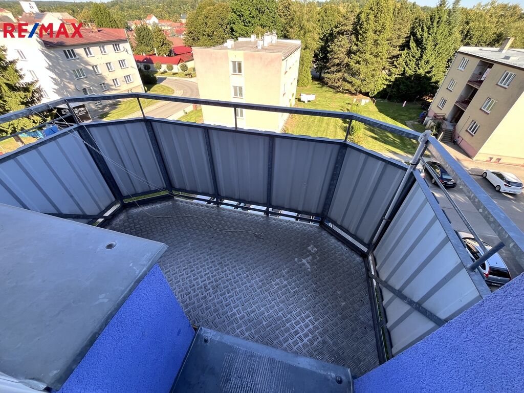 Pronájem panelového bytu 2+kk s balkonem v Kamenici nad Lipou ul. Za Kult. domem. Dispozičně je byt tvořen vstupní předsíní s vestavnou skříní, koupelnou se sprchovým koutem a WC, dále obývací kuchyní s kuch. linkou a sporákem, ložnicí se vstupem na balkon. Podlahové krytiny bytu tvoří PVC, okna plastová, s roletami. Byt se nachází ve 4. patře domu s výtahem, náleží k němu sklepní kóje v technickém podlaží domu. Kauce 2x nájem