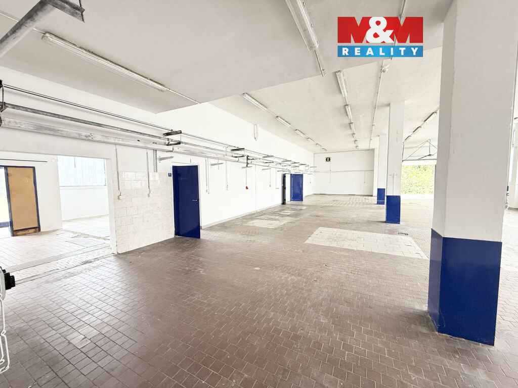 Vjezdová vrata se světlou výškou 2,8 m – vhodné pro dodávky a menší nákladní vozy. Prostory disponují sociálním zázemím a také menší kanceláří. Pro více informací kontaktujte makléře.