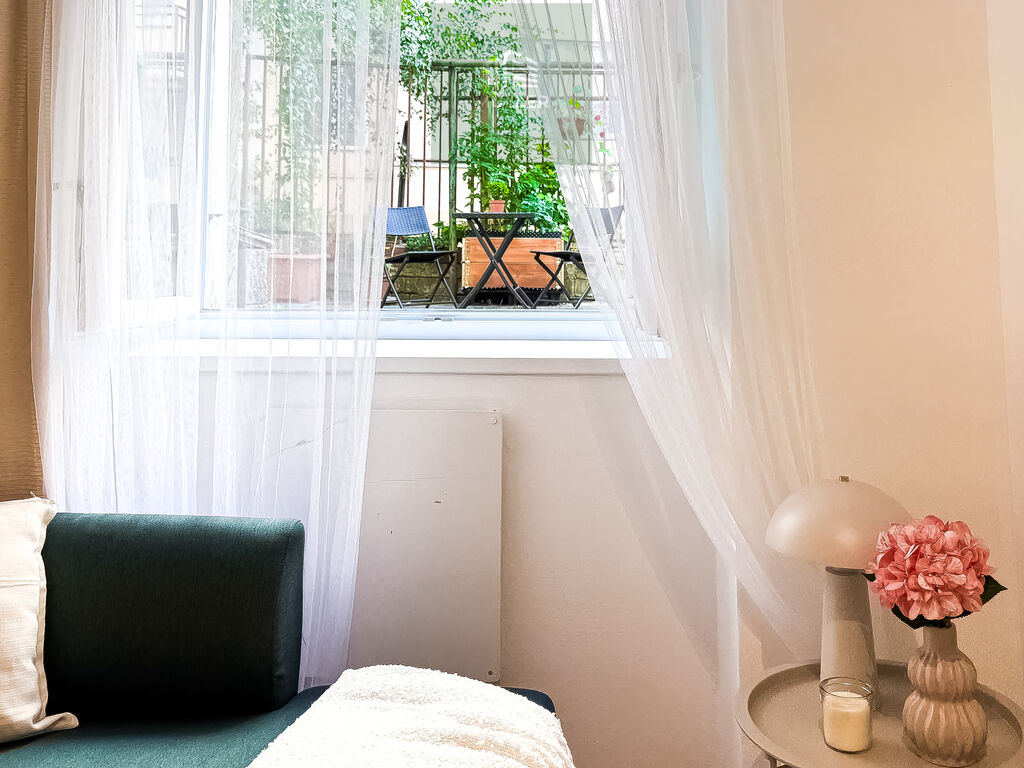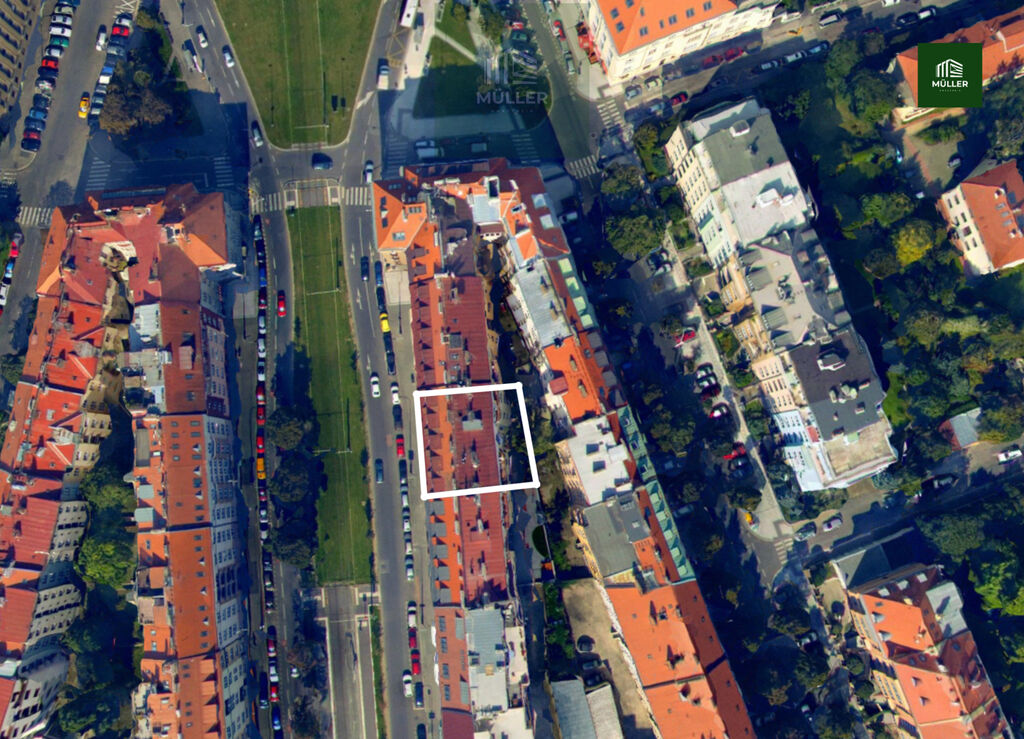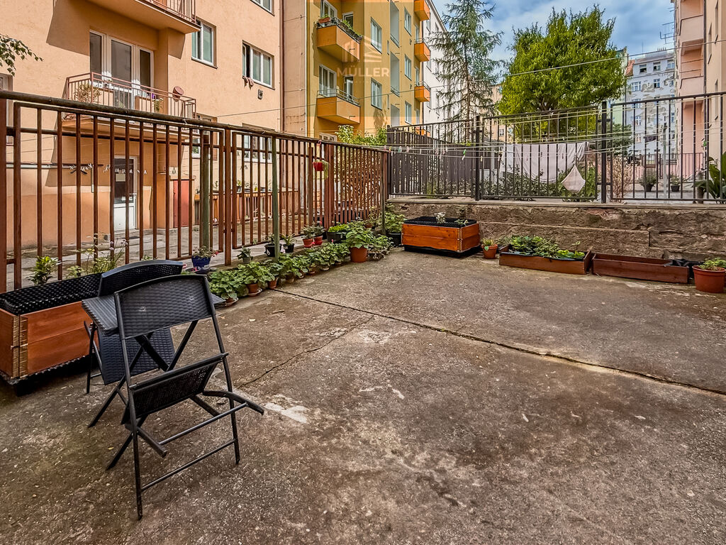 Všechna okna směřují do klidného zeleného vnitrobloku.