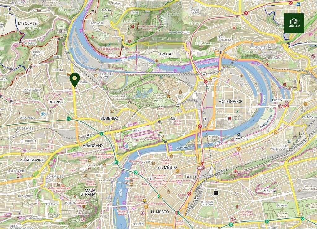 V pěší vzdálenosti od metra Dejvická autobusových a tramvajových zastávek.