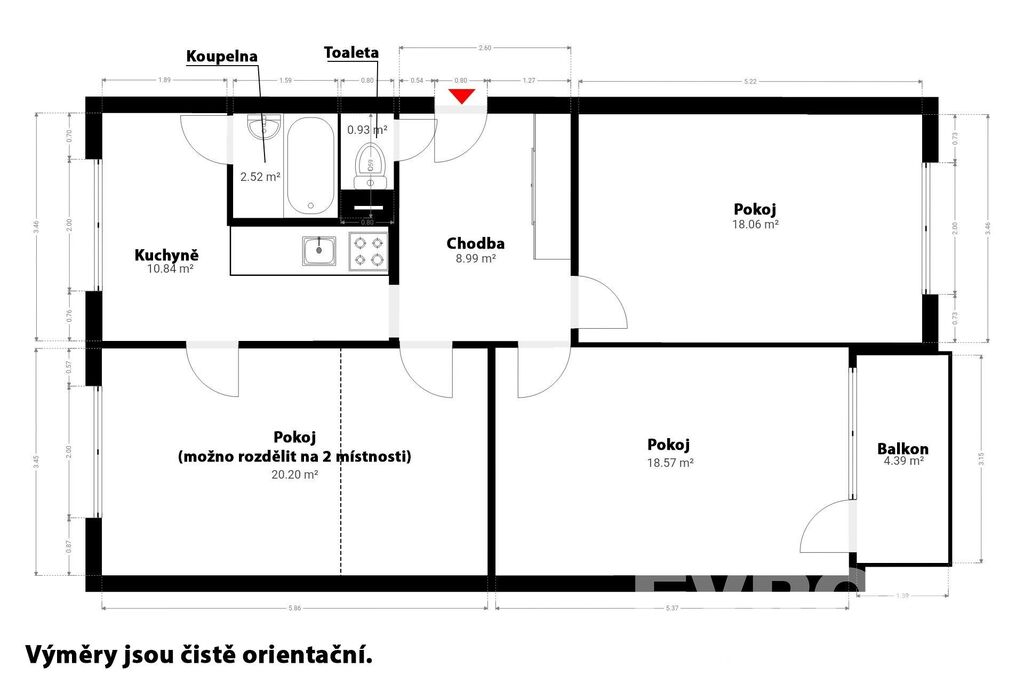 • Dispozice: 3+1, možnost úpravy na 4+1 (viz plánek ve fotogalerii)