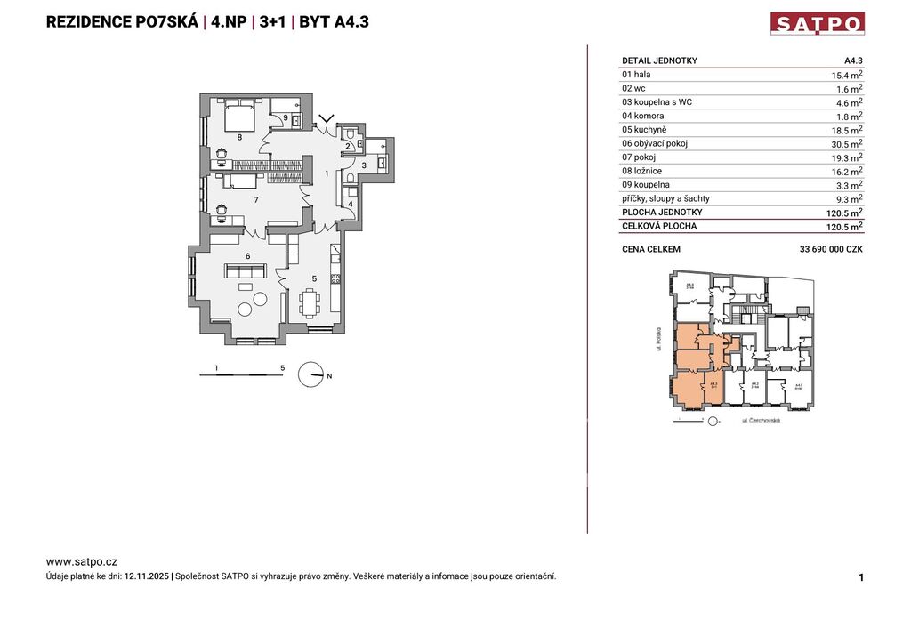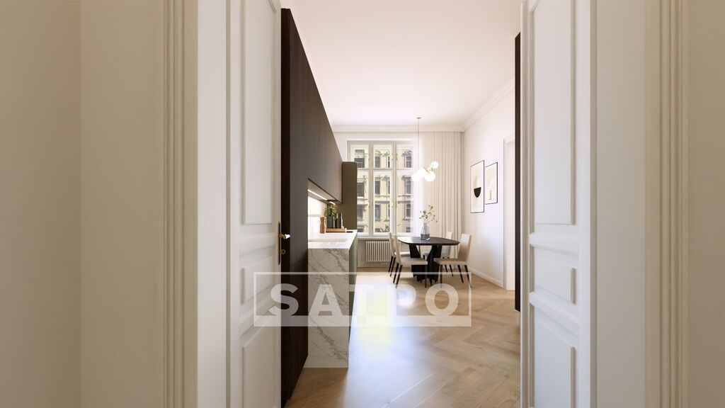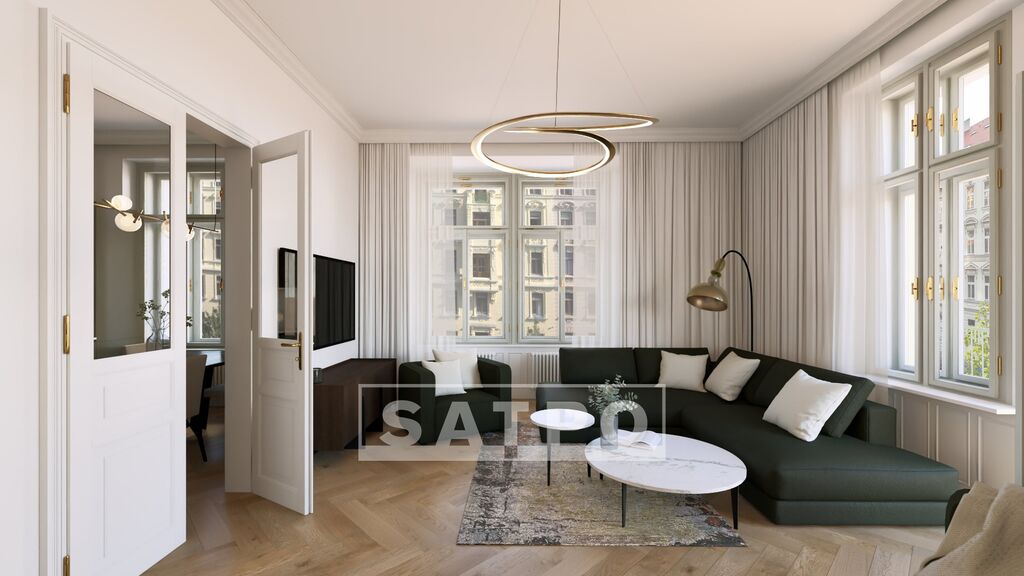 Představujeme vám prémiový byt s tradiční dispozicí 3+1 se dvěma koupelnami a komorou. Prostor, soukromí, elegance. Rohový byt ve 4. NP noblesního domu s vnitřní plochou 120,5 m2 vám nabídne výjimečné rodinné zázemí na adrese, která má styl, atmosféru i duši.