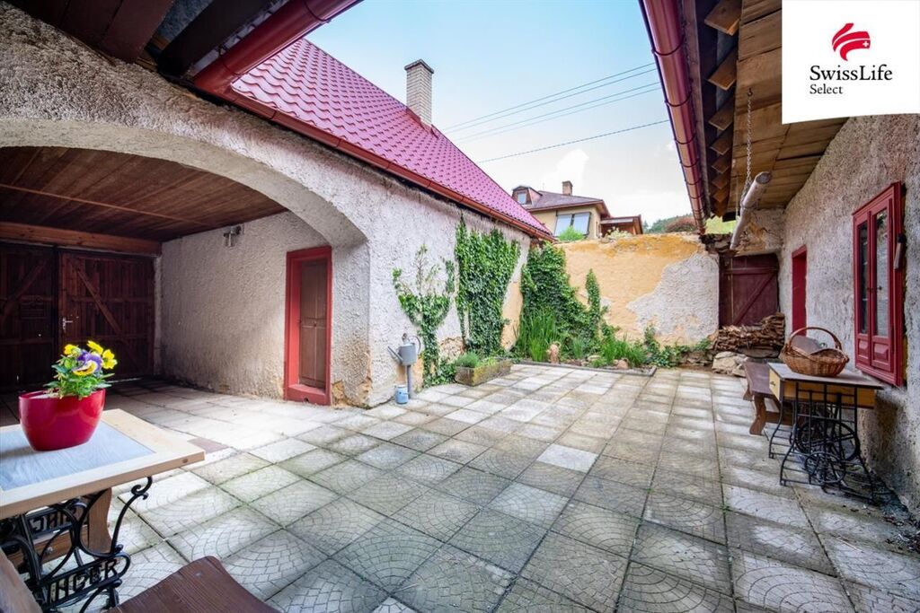 Kromě obytné části je ze dvorku přístupná i hospodářská část s bývalými chlévy. I ty jsou původní a vy je můžete stavebně proměnit podle svých představ. Současný majitel je využíval pro svou malou zámečnickou a truhlářskou dílnu a sklady. Do kamenné stodoly se dostanete i od obecní cesty a ze zahrady. Máte příležitost proměnit ji v letní zázemí, nebo v ní vybudovat další prostor pro bydlení. Plechová garáž stojí na pozemku vedle domu zcela samostatně.