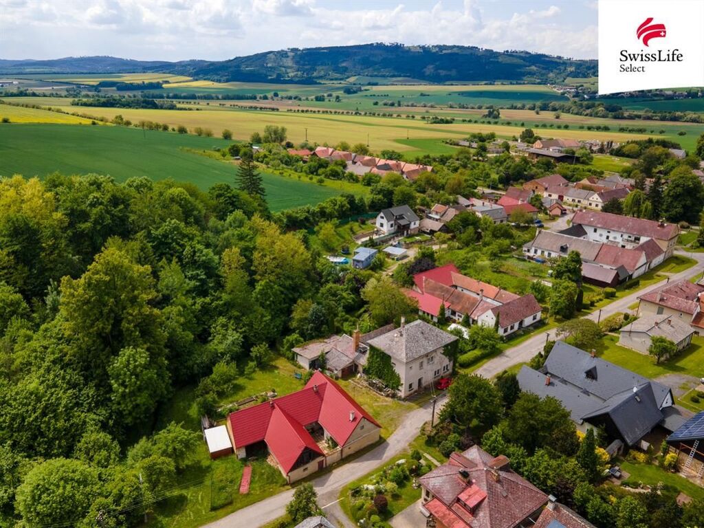 Na dům navazuje zahrada na jihozápad velká 411 m2 a patří k němu ještě 688 m2 trvalého travního porostu ve stráni (nyní pokryté náletovými křovinami a stromy), která svádí k tomu vyšplhat se po ní nahoru a rozhlédnout se po kraji. Je na co koukat.