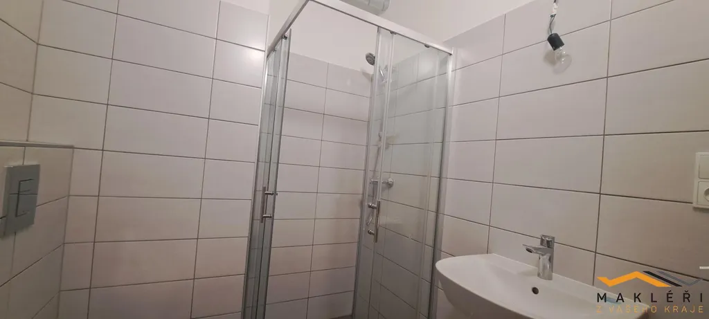 V koupelně se nachází připojení na pračku a sušičku, prostorný sprchový kout, umyvadlo a WC.