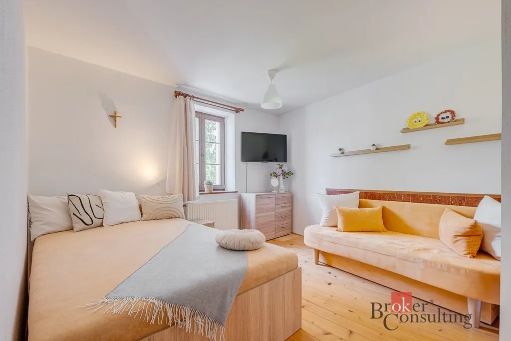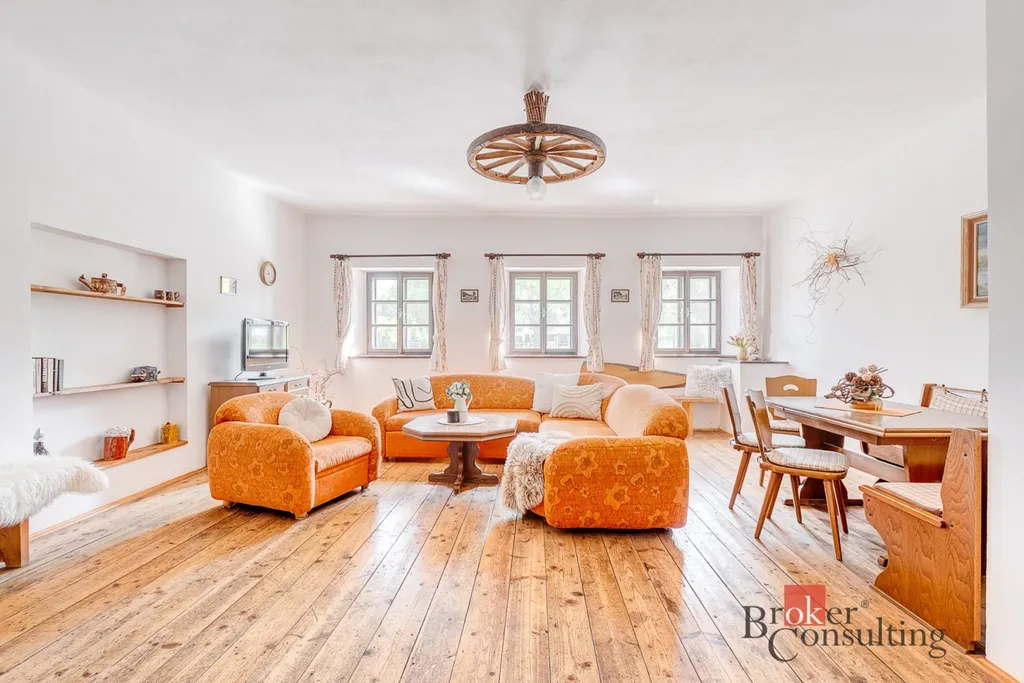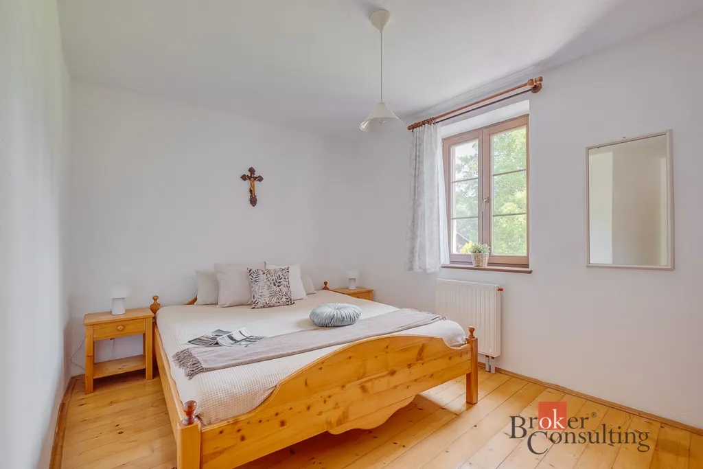 Celá nemovitost se skládá z volarské roubenky alpského typu (v perfektním stavu!) a pak ze zděné dvoupodlažní budovy z počátku 20. století. Dům je zateplený, po relativně nedávné rekonstrukci, pečlivě udržovaný a v dobrém stavu. Roubenka má dispozici 2kk, dolní bytová jednotka zděného domu 3+1 a horní 4+1. Dům disponuje také řadou dalších technických místností jako garáž, sklep, kotelna, velká dílna nebo prádelna. Zvlášť atraktivní je velkorysý půdní prostor, který nabízí možnost 4. apartmánu s vysokými stropy a krásnými výhledy do okolí.