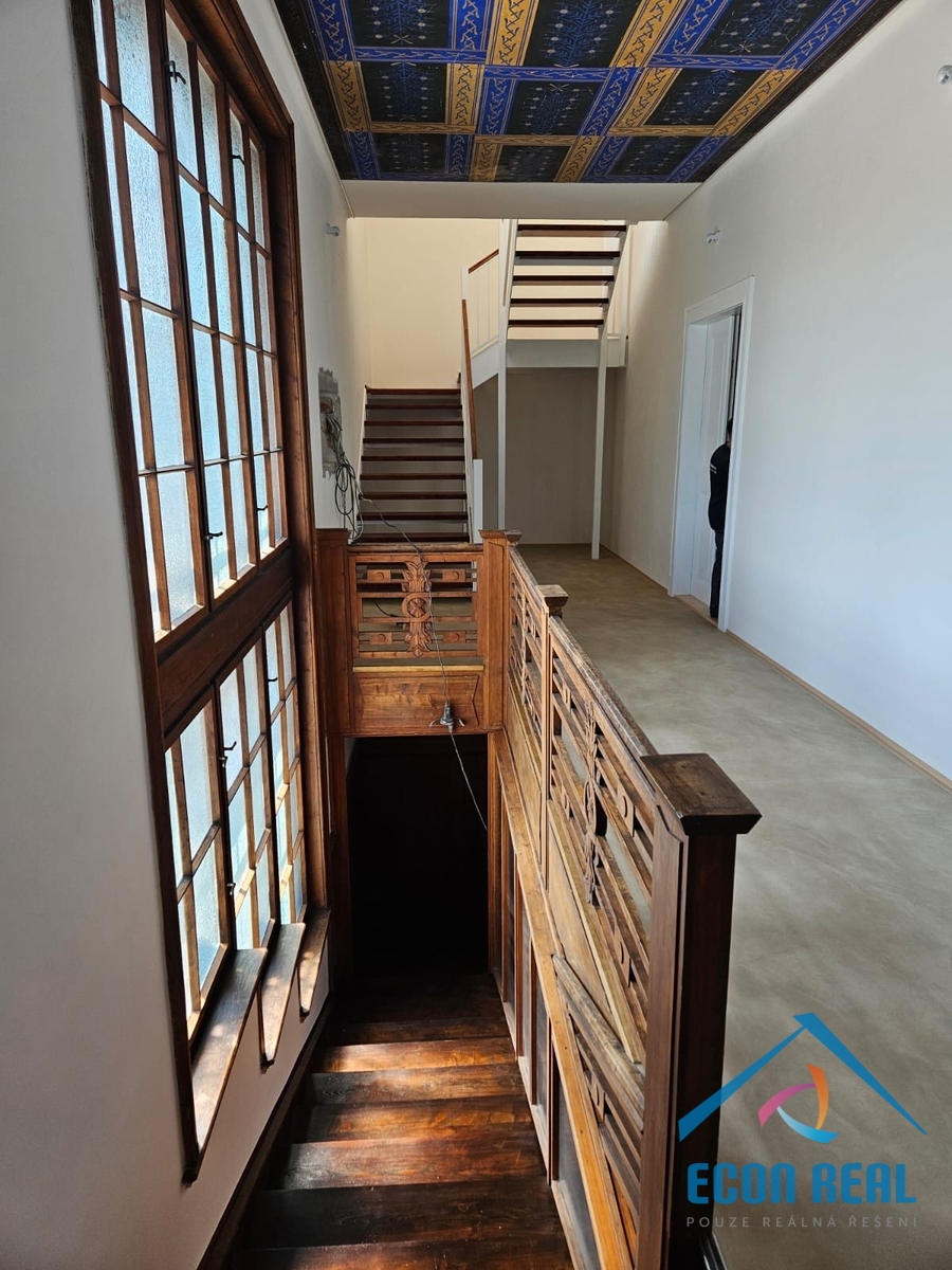 4 podlažní vila (sklepní prostory s obloukovými klenbami + 3 obytné podlaží) se nachází v samostatné zahradě a nabízí klidné, čisté a pohodové bydlení,