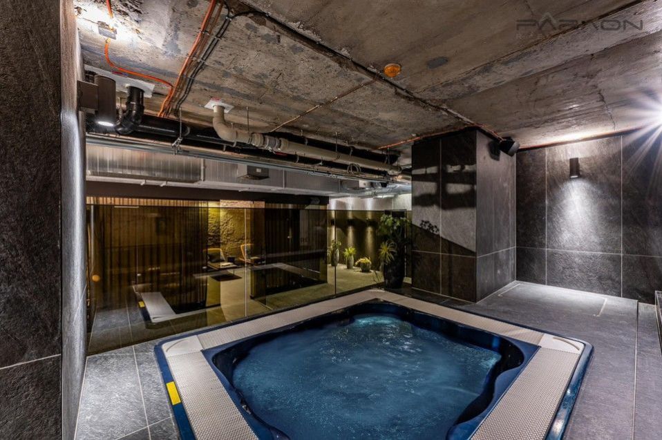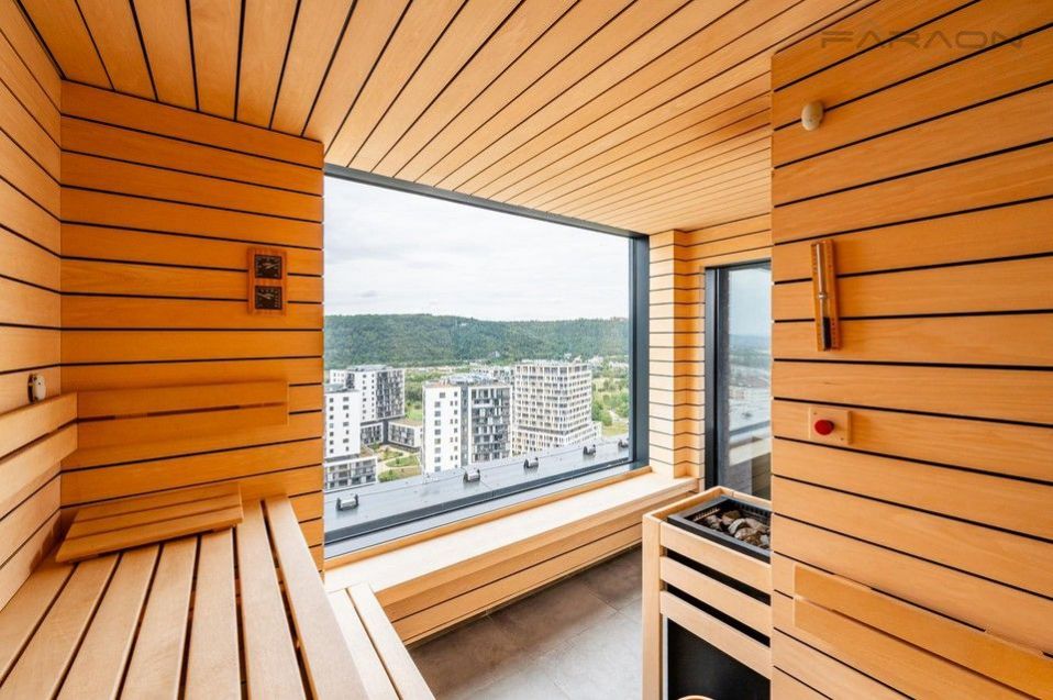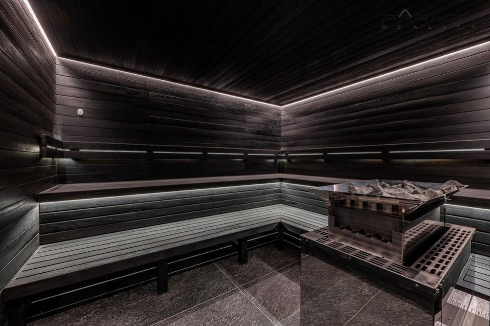 V zázemí domu je k dispozici plně vybavené fitness centrum, spa a wellness zóna s finskou saunou (k ochlazení padající ledová tříšť, sprchy a vědro se studenou vodou) a parní lázní, 18 metrů dlouhý prosklený bazén, odpočívárna, místnosti s masážními lehátky a vířivky umístěné vedle bazénu a privátní party místnost včetně kinosálu s prostorovým zvukem Dolby Atmos, kde lze pořádat narozeninové oslavy, pracovní schůzky či shlédnout premiéru filmu. V nejvyšších patrech jsou terasy se sdílenou letní kuchyní, venkovní grilovací zónou a panoramatickou saunou, vše přístupné pouze pro residenty a jejich hosty.