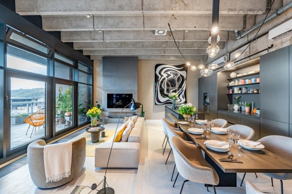 Prodej bytu ve standardu shell and core v 9. podlaží loftového domu (92,8 m2) s terasou (27,5m2) a dvěma parkovacími stáními.