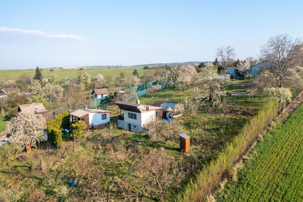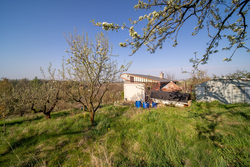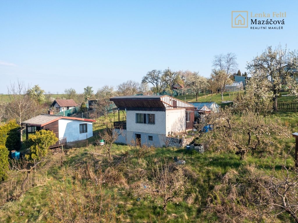 Zahrada se nachází ve svahu a chata je zasazena na jeho vrcholu, což zajišťuje krásný výhled i příjemné soukromí. Objekt je podsklepený, součástí je skleník a tradiční kadibudka se srdíčkem.