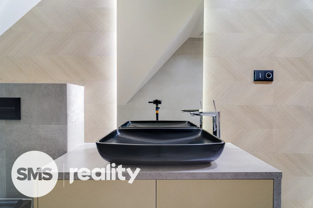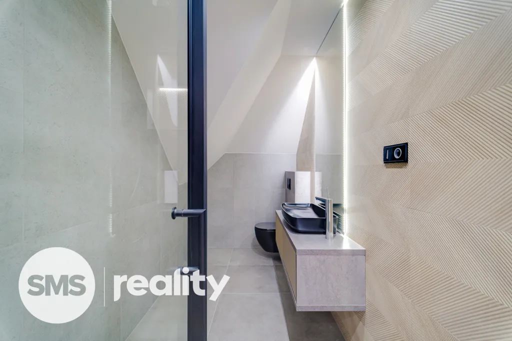 Rekonstrukce byla původně připravována pro vlastní bydlení majitele, proto zde naleznete pouze ty nejkvalitnější materiály a precizní detaily: betonové stěrky, luxusní skleněné zábradlí, kamenické rohy, vestavěné prvky na míru a moderní LED osvětlení.