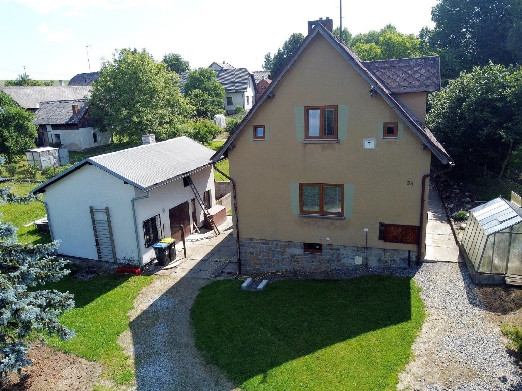 Dům je celopodsklepený a částečně zrekonstruovaný. V přízemí domu je prostorná předsíň, kuchyň spojená s obývacím pokojem, koupelna se sprchovým koutem, samostatné WC, komora. V patře jsou tři pokoje, koupelna s podlahovým topením a WC, lodžie. Ve sklepě domu je společenská místnost pro posezení vybavená kamny, menší kuchyňskou linkou s dřezem, WC, sprchový kout a větší technická místnost, kterou lze využít k uskladnění sezónních věcí. Vedle domu je samostatně stojící budova s garáží a prostory pro malé hospodářství. Dům stojí na pozemku o celkové výměře 4193m2 se třemi kaskádovitě vybudovanými rybníky.