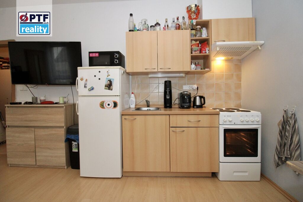 V bytě zůstává kompletní vybavení: kuchyňská linka, elektrický sporák, lednice, odsavač par, manželská postel, noční stolek, jídelní stůl, TV stolek a šatní skříně – stačí si přinést osobní věci a bydlet.