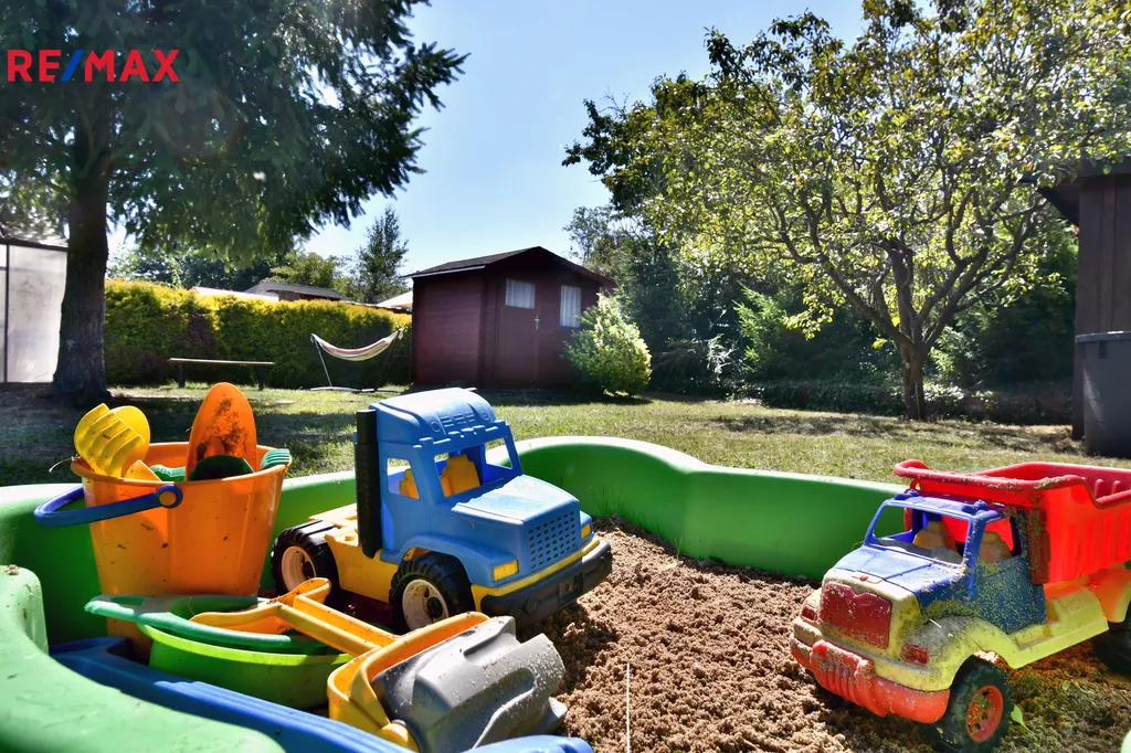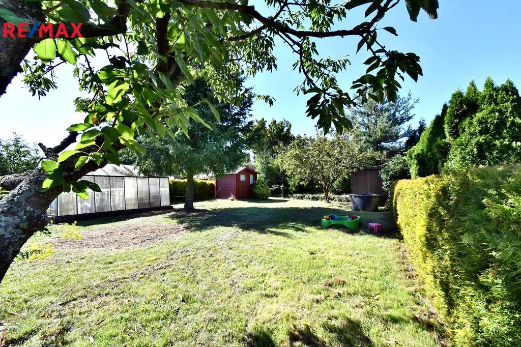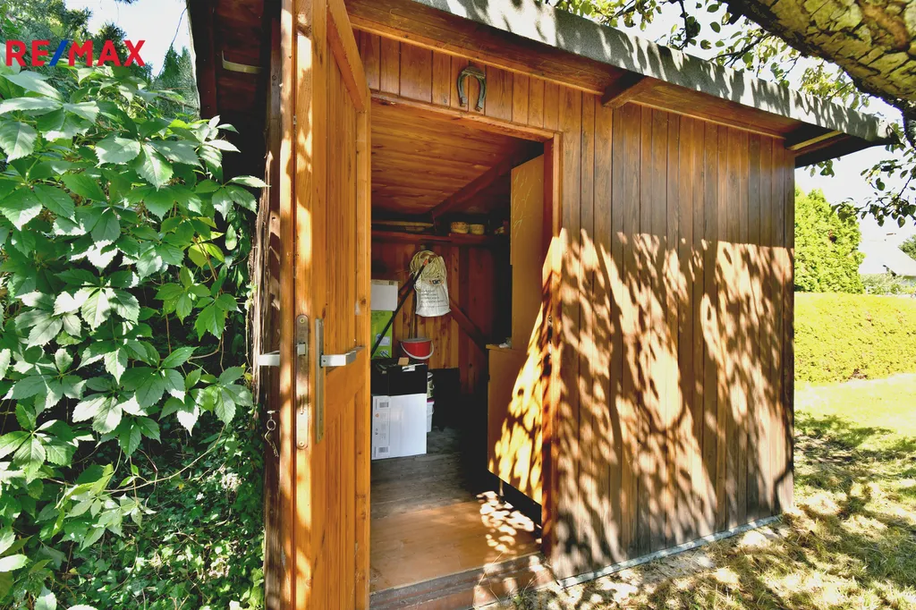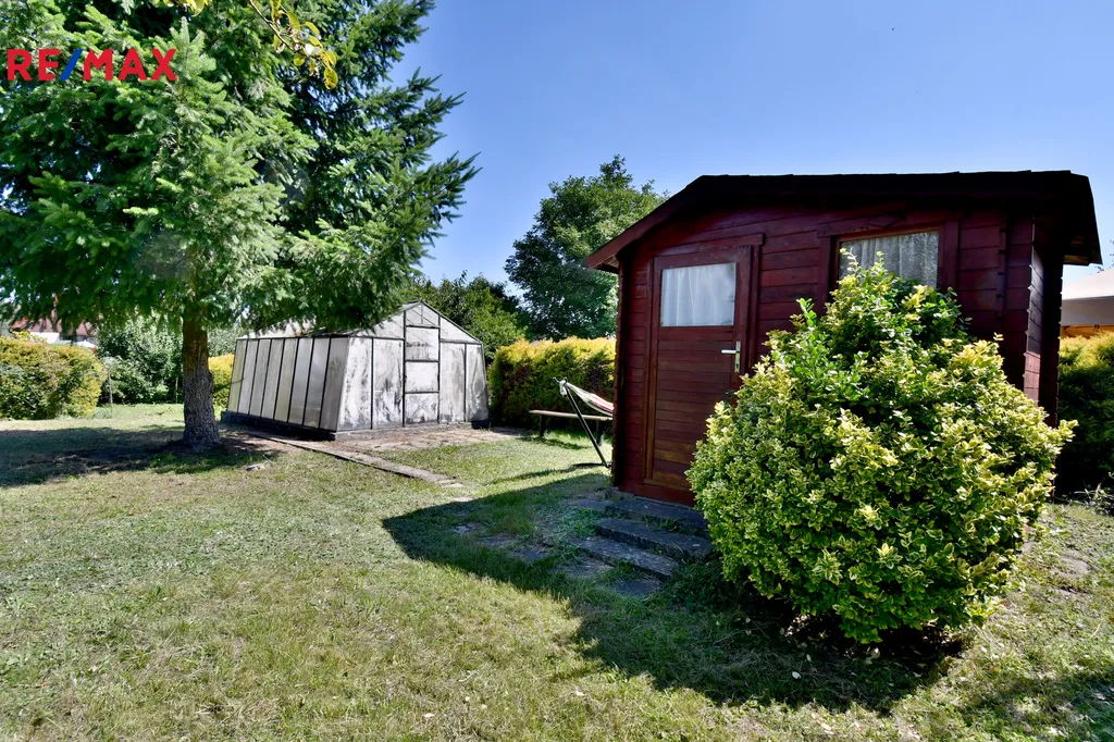 Na pozemku stojí dřevěná chatka v perfektním stavu, která poskytuje útulné zázemí pro odpočinek po práci na zahradě. K dispozici je také skleník, ideální pro pěstování nejrůznějších druhů zeleniny a rostlin, a domek na nářadí, který pomáhá udržet zahrádku v perfektním pořádku.