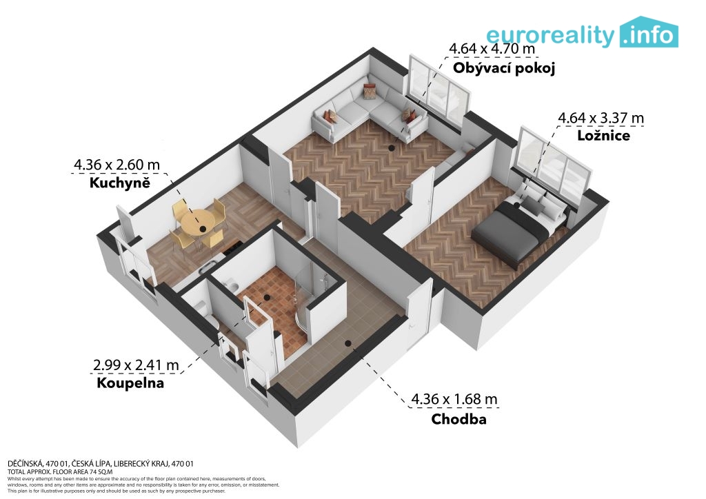 Nabízíme k prodeji byt v osobním vlastnictví o dispozici 2+1 a celkové ploše 63,1 m² ( z toho 54,8 m2 užitná plocha bytu + dva zděné sklepy s celkovou výměrou 8,3 m2), nacházející se ve 3. patře cihlového bytového domu v ulici Děčínská, Česká Lípa. K bytu náleží také dva prostorné zděné sklepy v suterénu a jako mimořádný bonus je v ceně samostatná garáž - plechová, izolovaná, zkolaudovaná - o výměře 19 m² na vlastním pozemku, která se nachází v bezprostřední blízkosti domu. Parkování je tak možné pohodlně přímo ve vlastní garáži nebo u domu.