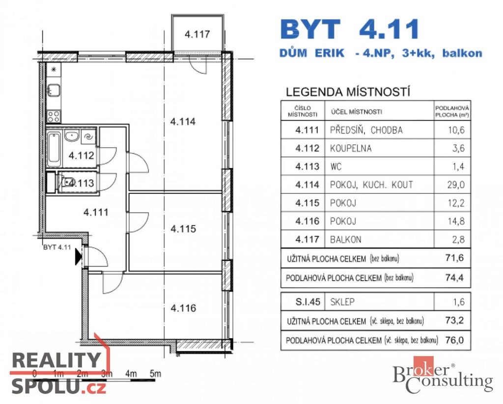 Nabízíme k prodeji slunný byt 3+kk o podlahové ploše 71,6 m² s balkonem (2,8 m²) v oblíbené lokalitě Kladno - Kročehlavy.
