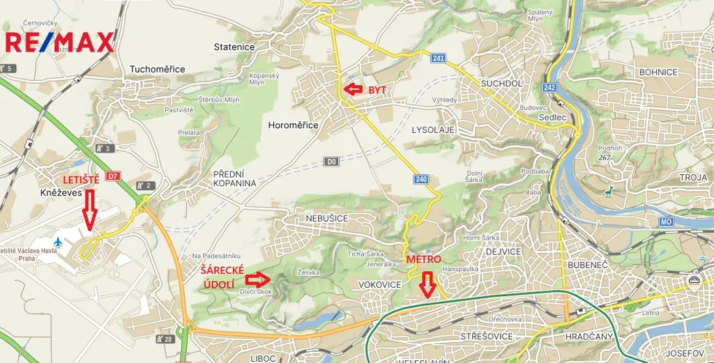 V místě je veškerá občanská vybavenost, kdy je důležité zmínit rychlý spoj na metro Bořislavka (cca 10 min). Obec je ideální také pro volnočasové aktivity díky nedalekému Šáreckému údolí a také Vltavy. Za zmínku také stojí pozoruhodný barokní zámeček, který je jen pár metrů od bytu.
