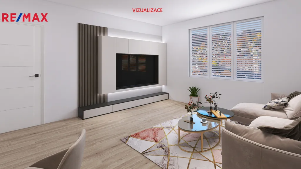 Byt se nachází v prvním nadzemním patře menšího čtyřpatrového bytového domu. Dominantou bytu je velký obývací pokoj, ze kterého je vstup do první ložnice orientované na jihovýchod a je z ní vstup na lodžii. V bytě jsou ještě další dva pokoje, kdy jeden je přístupný z chodby a druhý se nachází za kuchyní. V kuchyni neschází ani praktická komora na zásoby. Dále je zde koupelna s vanou a samostatná toaleta. Celý byt je v udržovaném původním stavu se zánovní kuchyňskou linkou.