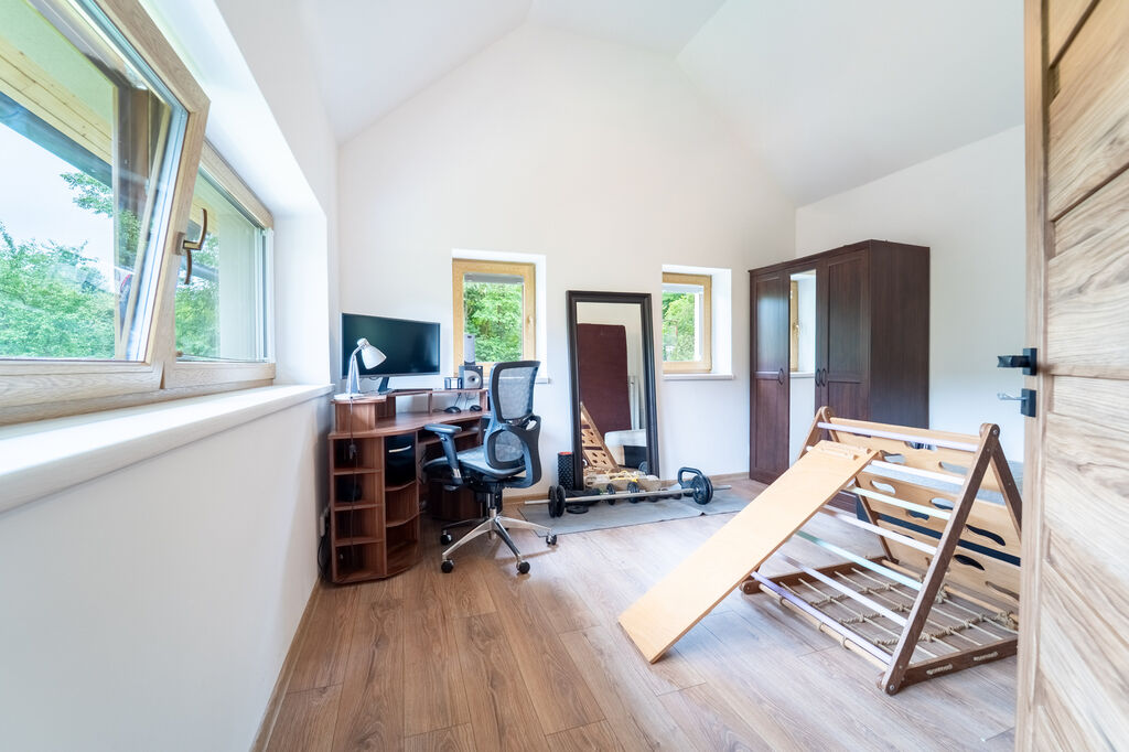 Velkým benefitem této nemovitosti je orientace všech obytných místností směrem do zeleně – hlavní okna i výhled z domu směřují do vlastní zahrady a na okolní přírodu, což zajišťuje absolutní soukromí, klid a krásné světelné podmínky po celý den.