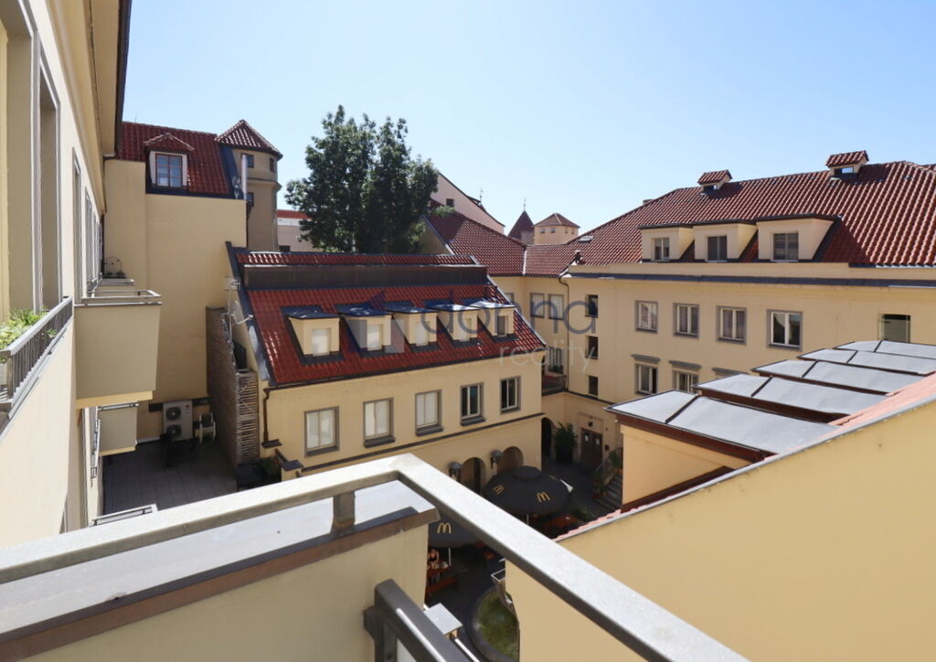 Byt je kompletně zařízený a sestává z velkého obývacího pokoje, plně vybavené kuchyně s jídelnou, ložnice se vstupem na balkon, koupelny se sprchovým koutem, WC a z prostorné předsíně. Obývací pokoj a jídelna má okna do Mostecké ulice, ložnice do tichého vnitrobloku. Na podlahách parkety a dlažba. Topení je centrální. Dům se nachází v atraktivní lokalitě v blízkosti Karlova mostu, v samém srdci starobylé Prahy. Skvělá dopravní dostupnost, tramvajová zastávka Malostranské náměstí hned za rohem, 1 zastávka na metro A, stanice Malostranská.