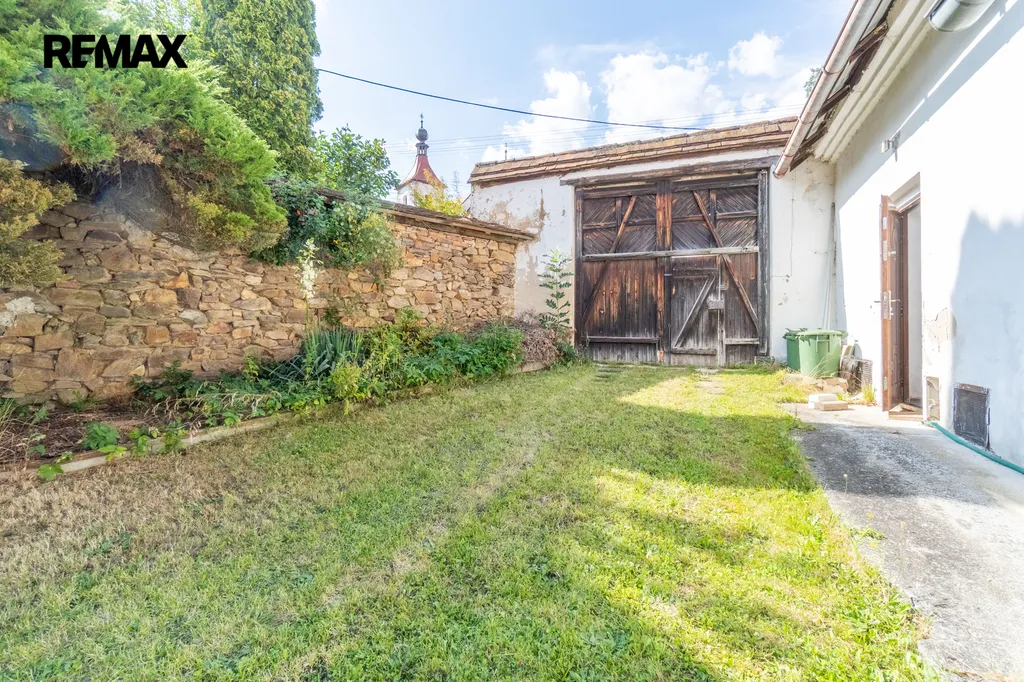 V pravé části domu se nachází původní hospodářská část – kůlna a průjezd do zahrady. Tato část nabízí zajímavý potenciál pro přestavbu na další obytné místnosti, studio s výhledem do zahrady nebo pracovní dílnu.