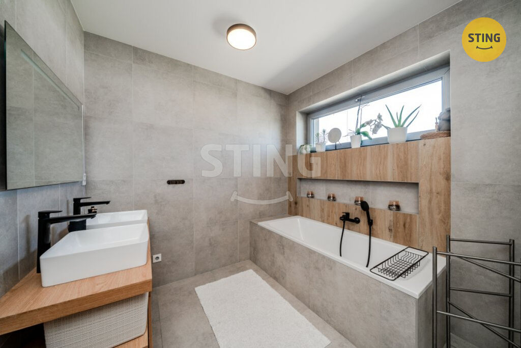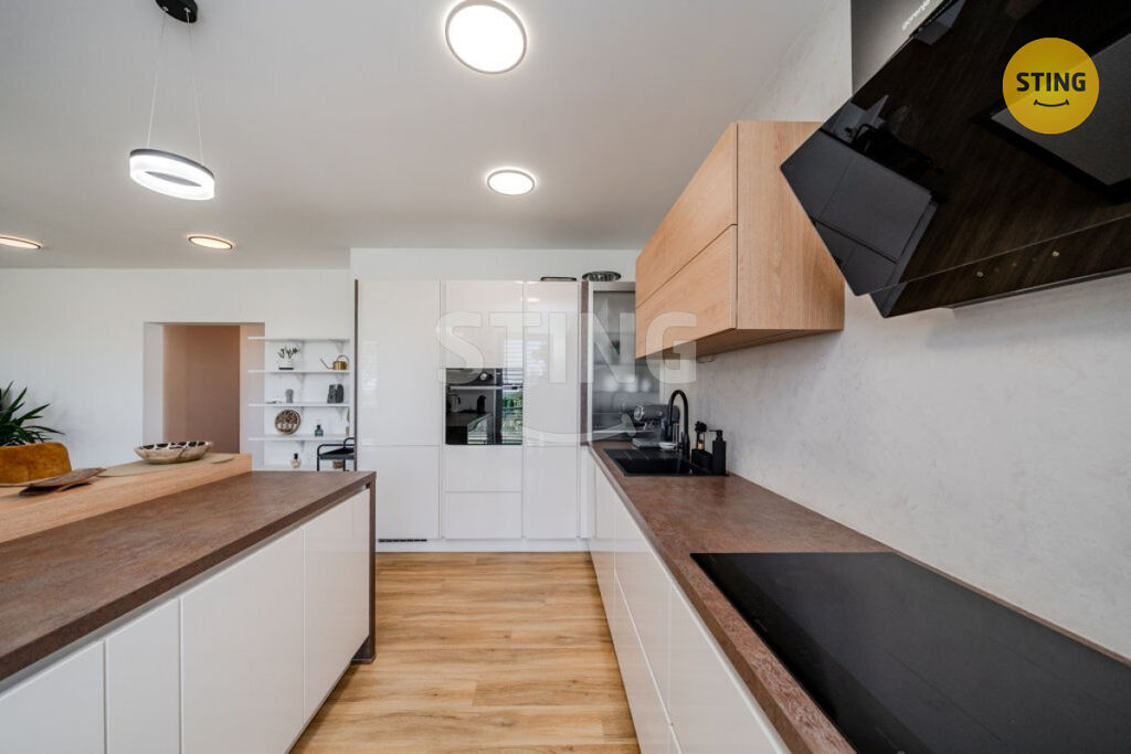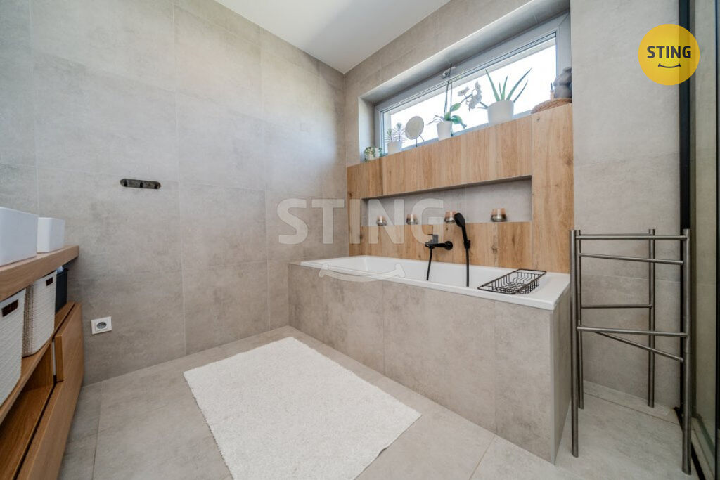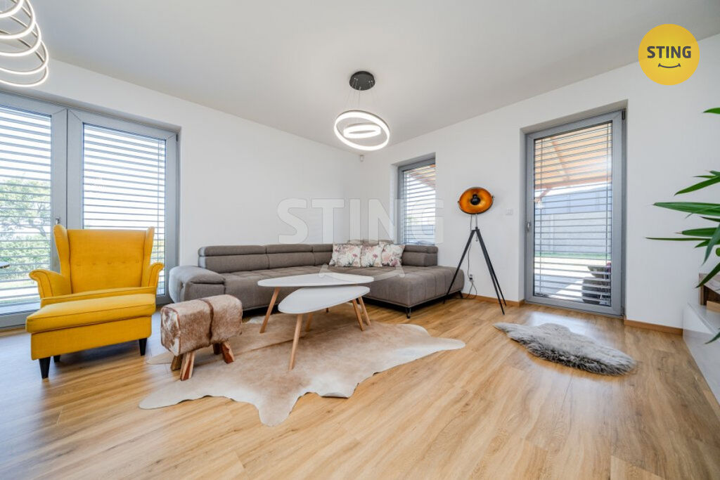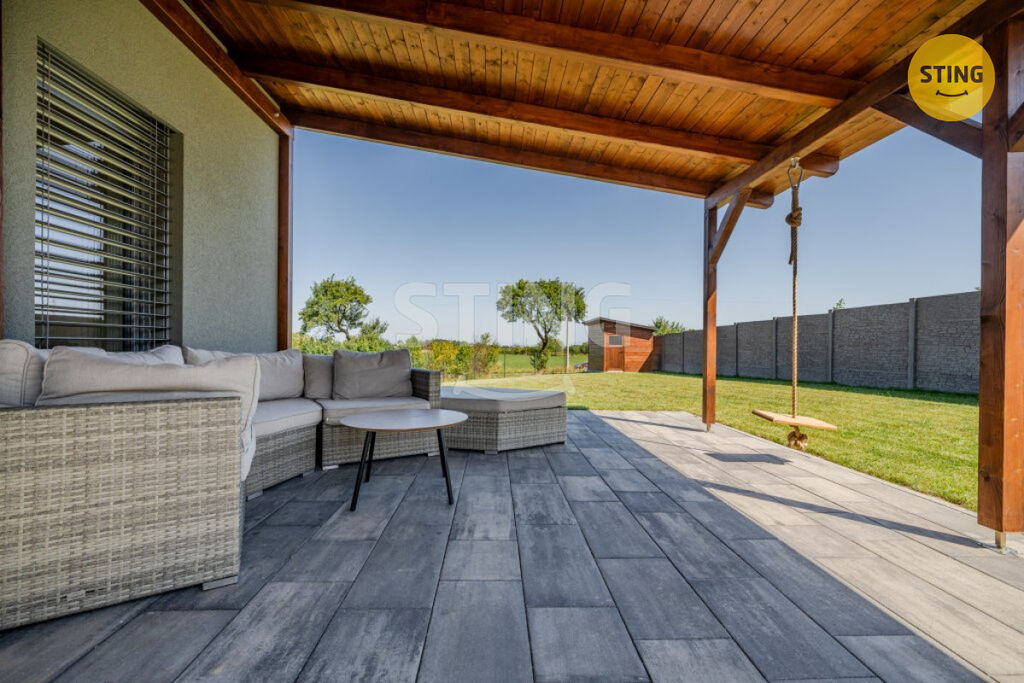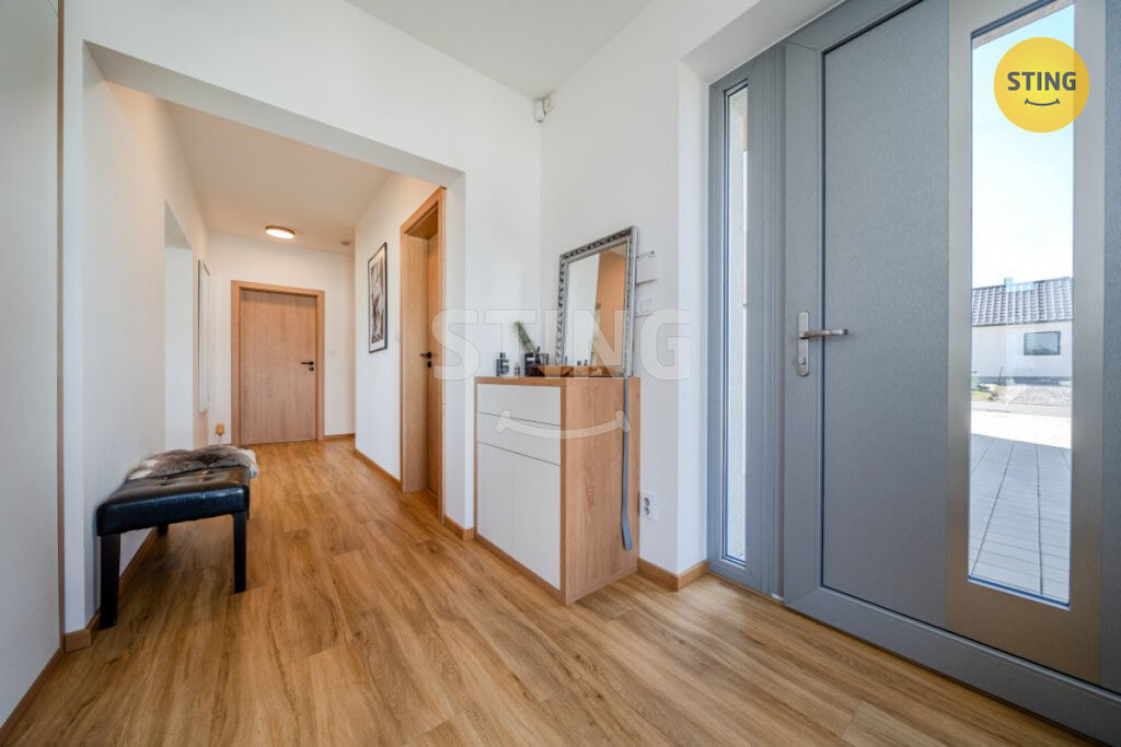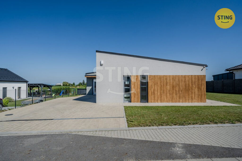 Rodinný dům o velikosti 4 + KK se nachází v klidné části Bílova. Jedná se o jednopodlažní rodinný dům, který je ve výborném stavu, kolaudace této nemovitosti byla v roce 2023. V domě se nachází zádveří, chodba, obývací pokoj propojený s kuchyní, dva pokoje, ložnice s šatnou, prostorná koupelna (vana, sprchovým kout, WC), dále samostatné WC, technická místnost. Z každé místnosti se francouzským oknem dostaneme na zahradu a z obývacího pokoje na zastřešenou terasu (zde je vyvedena elektřina). Součástí prodeje je kuchyně na míru včetně spotřebičů (myčka, digestoř, vestavěná trouba, varná indukční deska vše značky Gorenje), vestavěné skříně umístěné - jak v zádveří, tak v pokoji. K dispozici půdní prostor o velikosti 21m2.