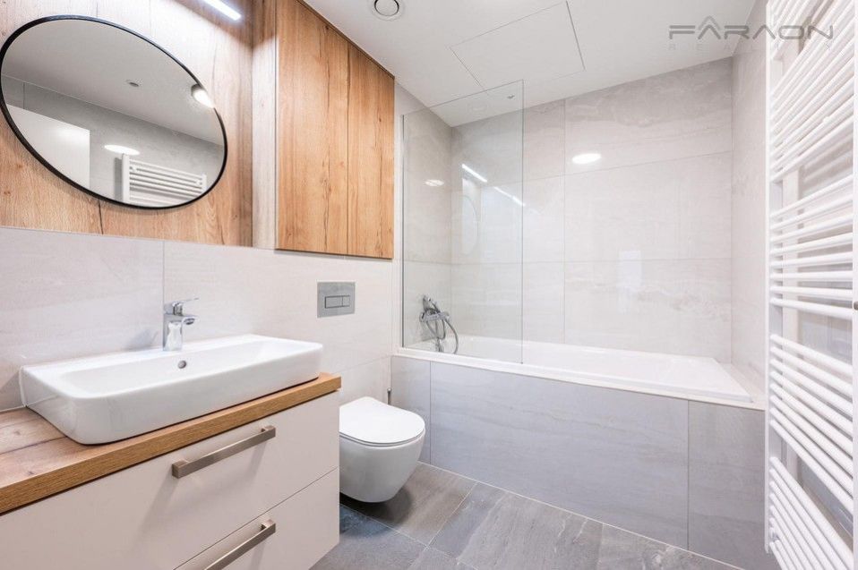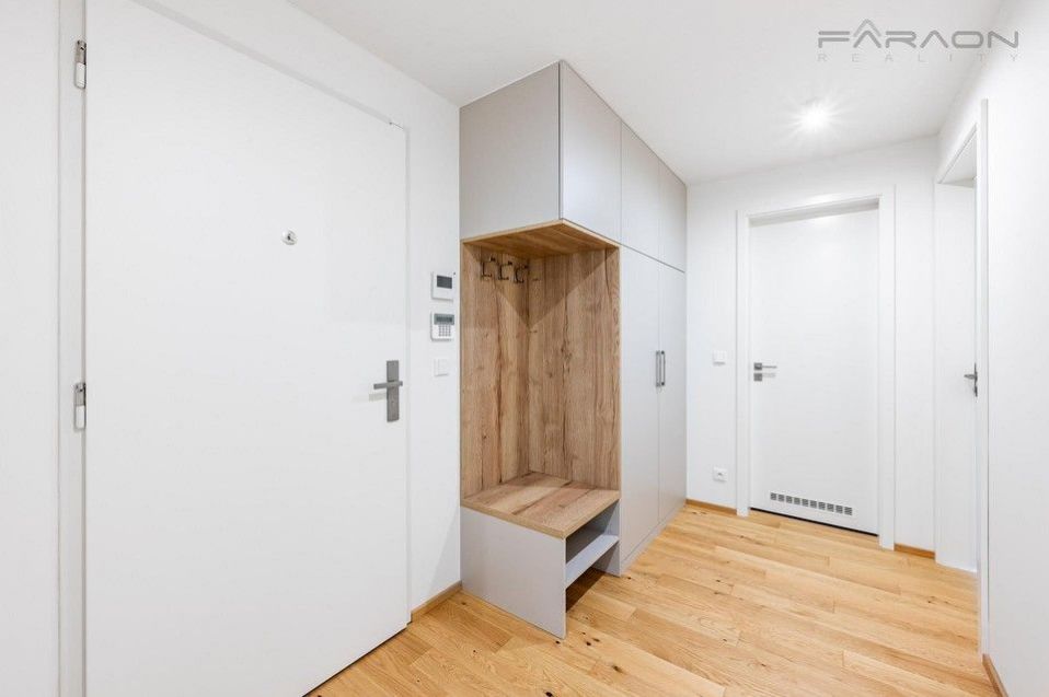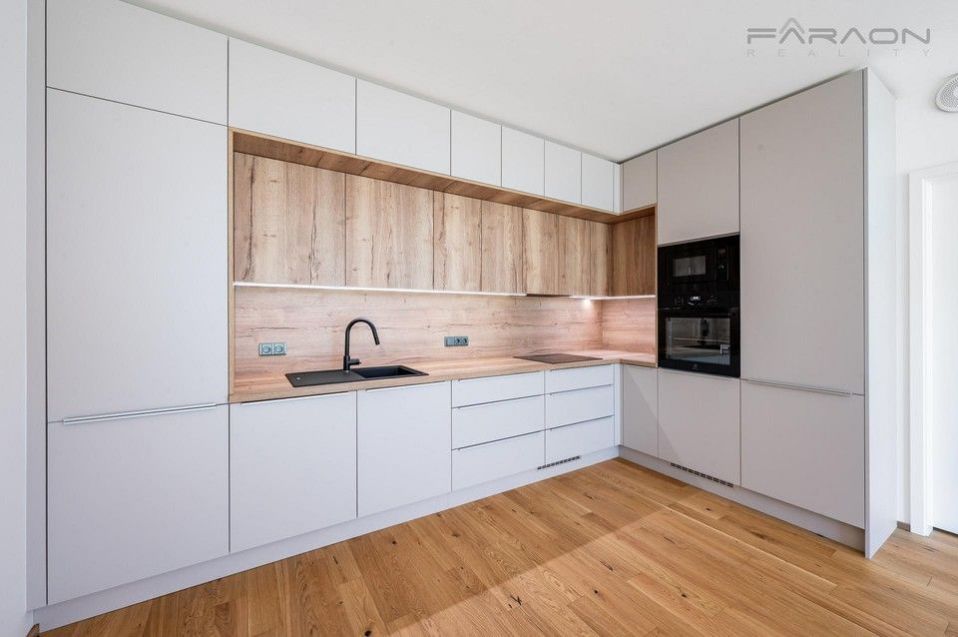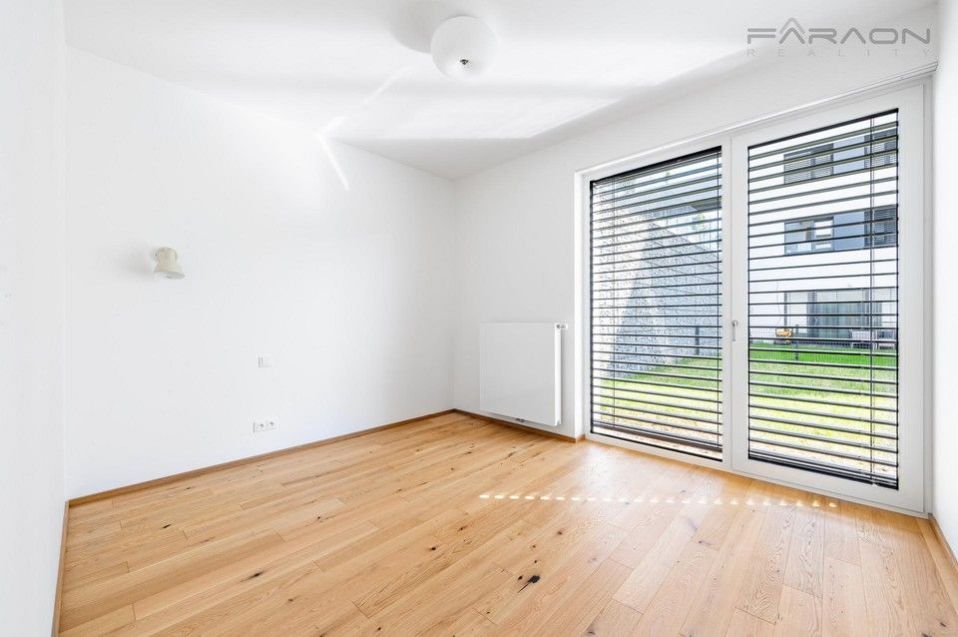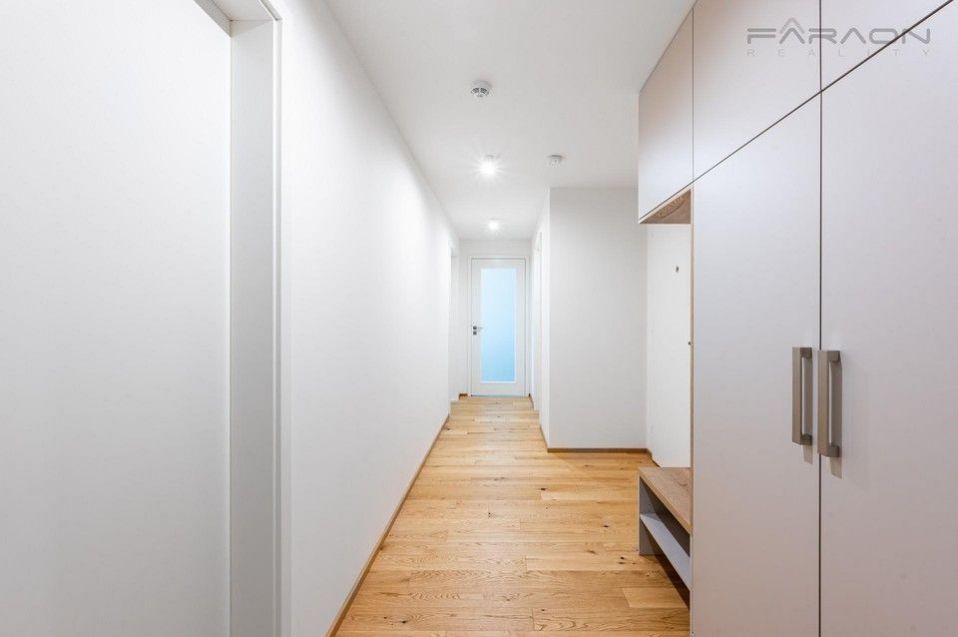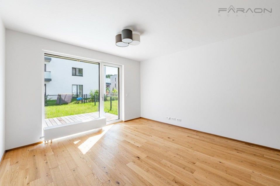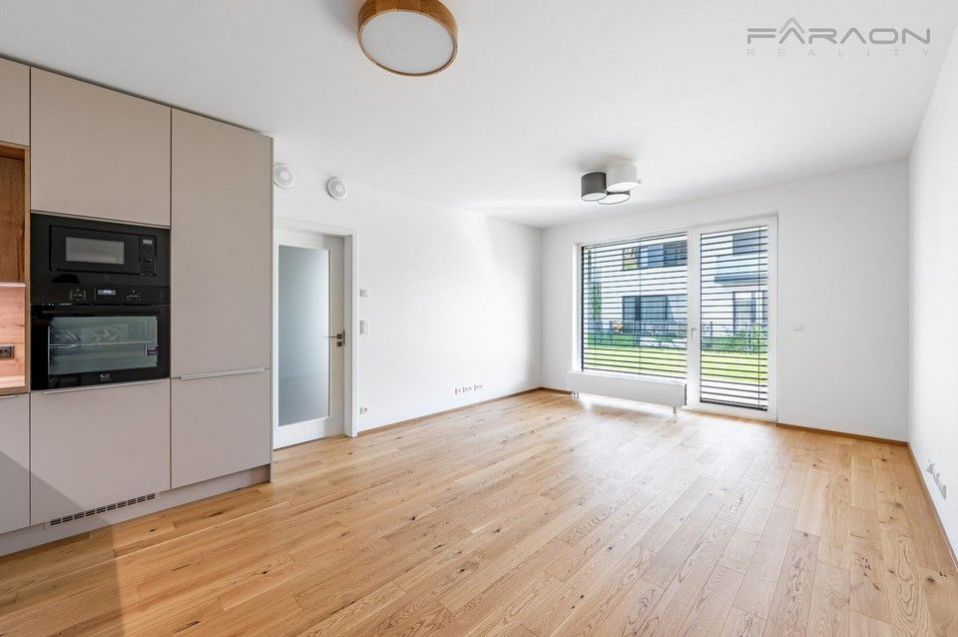 Slunná dispozice bytu 3+kk nabízí nadčasový design, promyšlenou dispozici a kvalitní materiály. Součástí vybavení jsou masivní dřevěné podlahy, moderní kuchyňská linka se spotřebiči ve světlém designu, rekuperace, exteriérové žaluzie, šatní skříně zhotovené na míru ( aktuálně ve výrobě), vstupní chodba se šatnou. Prostorná koupelna s vanou a vybavená koupelnovým nábytkem, závěsná toaleta a další samostatná toaleta s umyvadlem zvlášť. Podlahové vytápění. V ceně nájmu je zahrnuto garážové parkovací stání, sklep a k bytu náleží také krásná soukromá předzahrádka ideální pro posezení nebo odpočinek. Vše je zcela nové a připravené k nastěhování.