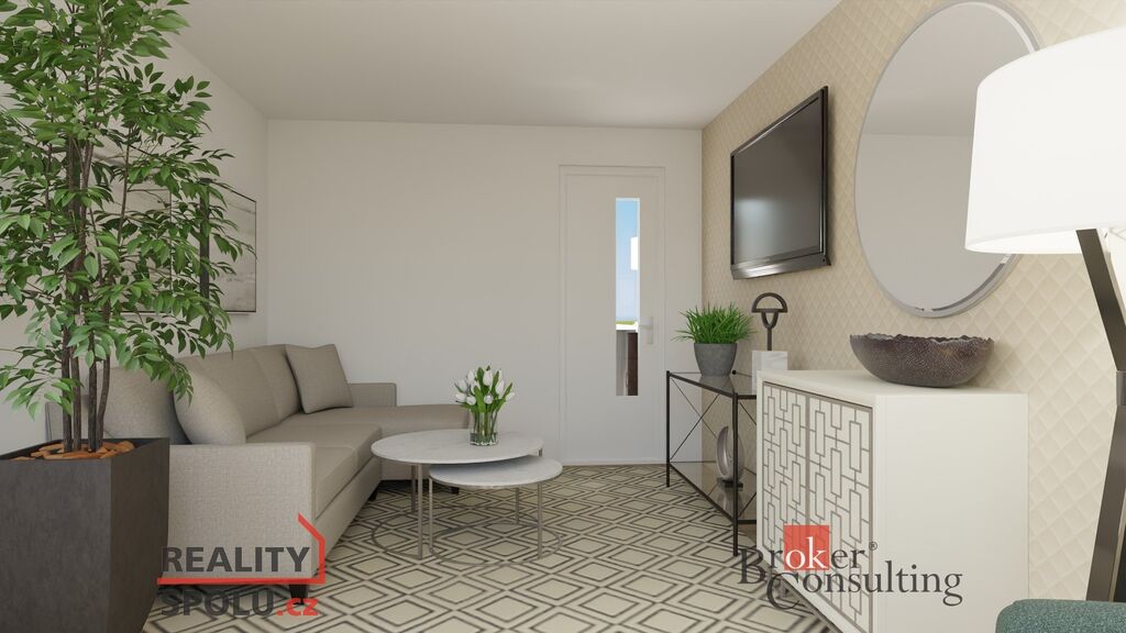 Upozornění: Fotografie obsahují i vizualizace možné rekonstrukce – byt je aktuálně v původním stavu.