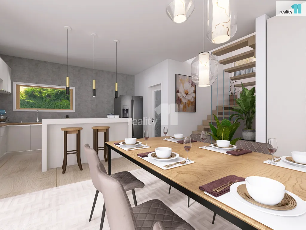 Dům nabízí moderní 4+kk s důrazem na vzdušnost a praktické uspořádání.
