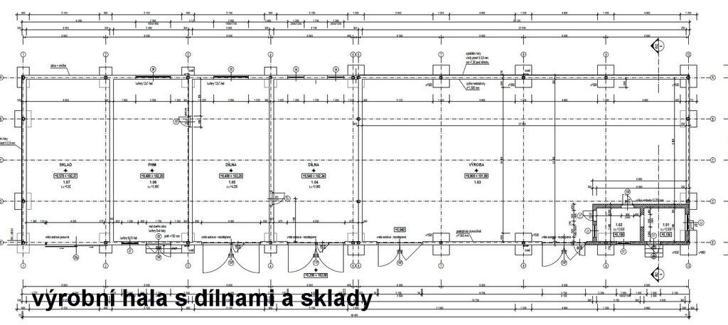 Ocelová výrobní a skladová hala se zateplenou střechou má užitnou plochu 555 m2 a je tvořena kanceláří, výrobní částí, skladem PHM, dílnou s montážní jámou a dalšími 2 dílnami. K této hale započala přístavba další výrobní haly pro kovovýrobu (172 m2) a skladové haly (299 m2), která by mohla být řešena jako dvoupodlažní s výškou stropů cca 3 metry.