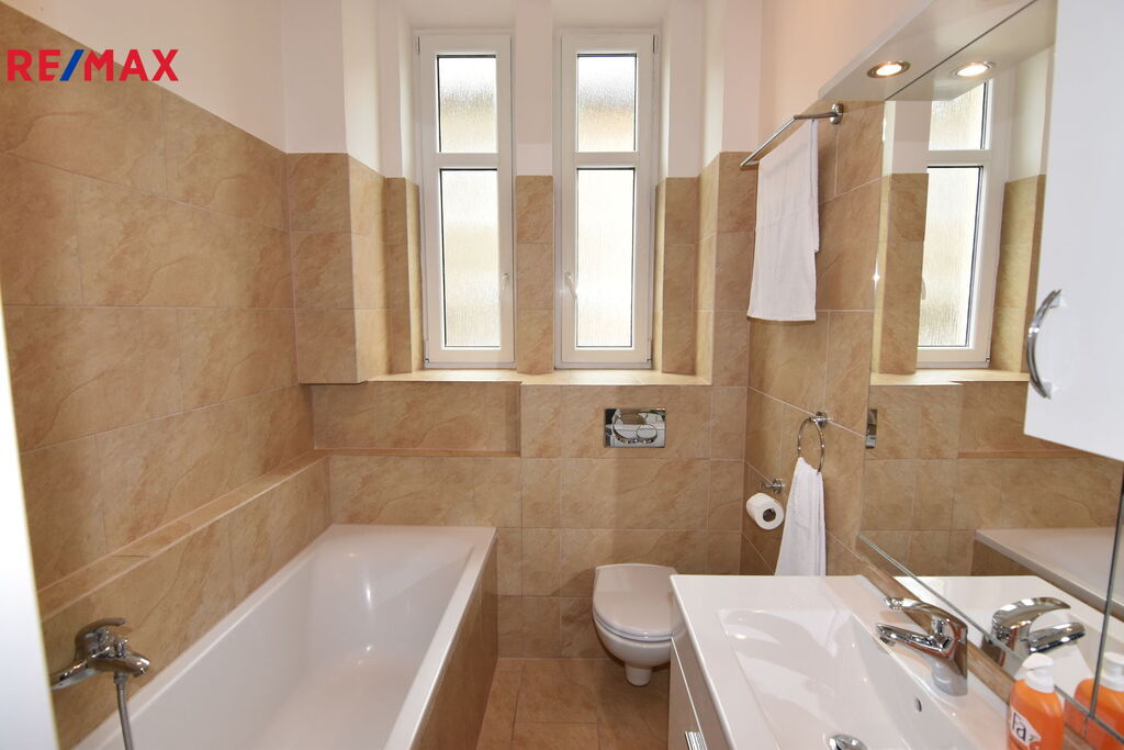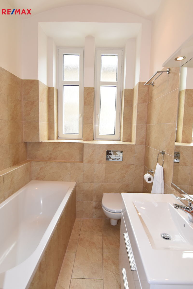 Podlahové krytiny jsou vinyl a keramika. Okna plastová se žaluziemi. Bytu náleží komora s přípojkou na pračku a plynovým kotlem, nabízí se bez vybavení (sušička na prádlo Whirlpool ano) s možností využití dvorku a je volný ihned. Měsíční zálohy: na vodu 350 Kč za osobu, elektřinu a plyn si zájemce hlásí na sebe. Zájemce hradí jistotu ve výši 15.000 Kč a provizi RK ve výši jednoho nájmu + DPH.