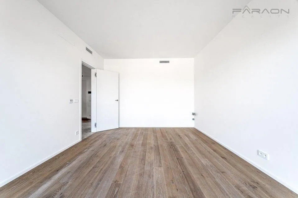 Vybavení bytu tvoří dřevěná izolační trojskla HS portály, dřevěná podlaha v obývacím pokoji a ložnici a velkoformátové dlaždice na chodbě a v koupelně.