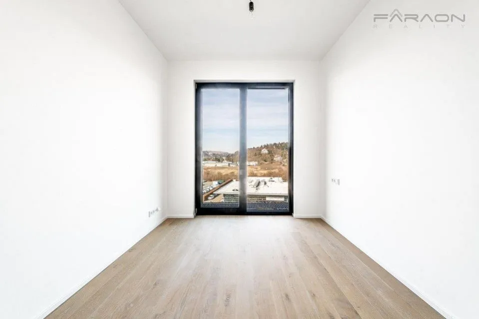 Interiér slunného bytu tvoří předsíň, prostorný obývací pokoj s kuchyňským koutem, ložnice, koupelna a balkon. Orientace bytu je na sever.
