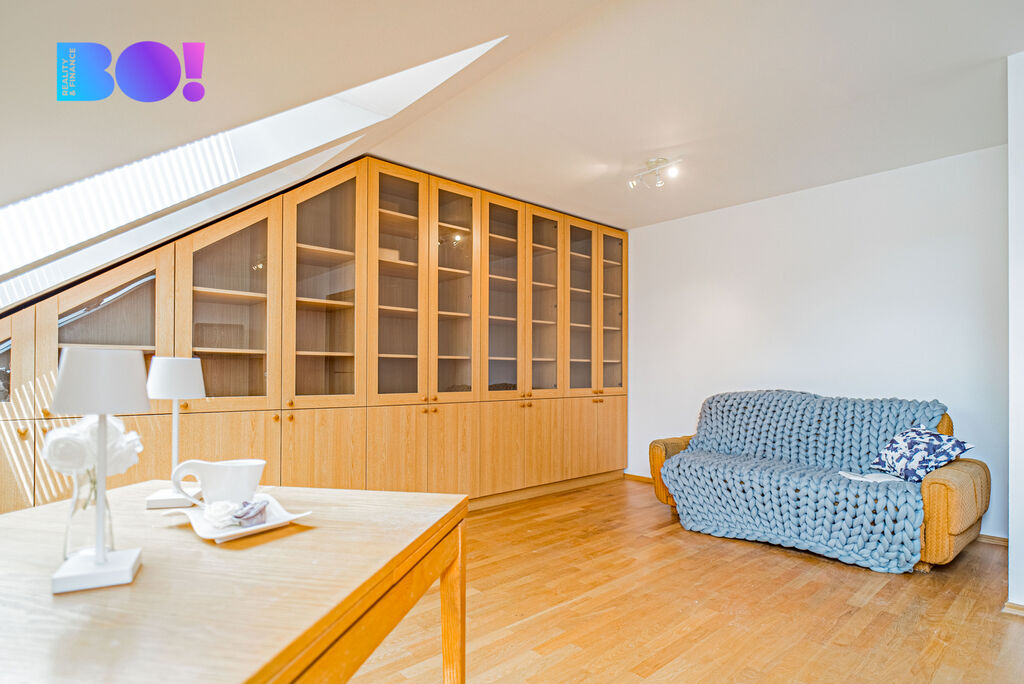 Kuchyň propojená s obývacím pokojem nabízí 55 m² nadčasového prostoru s velkým množstvím denního světla – vysoké stropy a velká okna vytváří vzdušný dojem, který nebývá v řadových domech obvyklý. V celém domě naleznete kvalitní dřevěné masivní podlahy, dveře a zárubně i dřevěná střešní okna Velux a nadčasový design. V domě jsou dvě koupelny a každé patro má min. 1 WC, což je komfortní i pro větší rodinu nebo zástupce více generací. Všechna okna jsou opatřena žaluziemi.