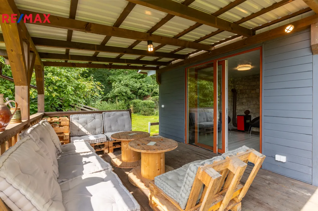 Chata prošla rekonstrukcí – je zde nová elektroinstalace, nábytek a terasa určená k posezení i grilování. Je podsklepená, takže nabízí i praktický prostor k uskladnění věcí. Na pozemku rostou ovocné stromy (třešně, višně, rybíz a další), které potěší každého milovníka vlastní úrody.
