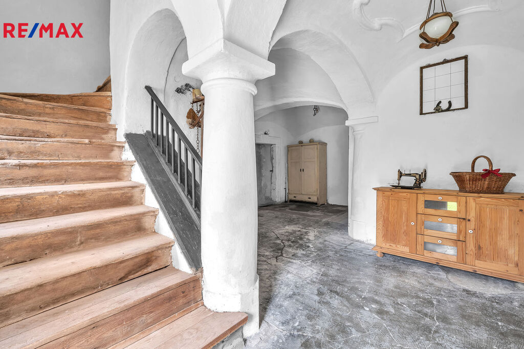 Současná dispozice obytné budovy je v 1. podlaží rozdělena na prosvětlený obývací pokoj s kachlovými kamny, kuchyň, 2 samostatné pokoje, zrekonstruovanou koupelnu a navazující hospodářskou část s konírnou, dílnou a dalším volným prostorem pro možné rozšíření obytné plochy. V druhém podlaží, do kterého se dostanete po původním dřevěném schodišti, se nachází 3. samostatný pokoj a rozsáhlé půdní prostory vhodné k realizaci vestavby. Třetí podlaží, respektive podkroví, je poté opět tvořeno velkým otevřeným půdním prostorem. Za zmínku rozhodně stojí rovněž stylový sklep s klenutým stropem. Dispoziční uspořádání jednotlivých místností je znázorněno na přiloženém půdorysu.