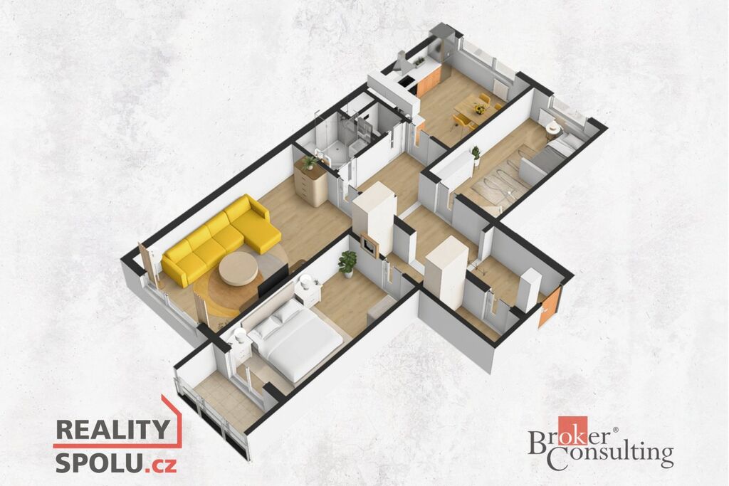 Byt, který kombinuje prostornost, praktičnost i útulnost.