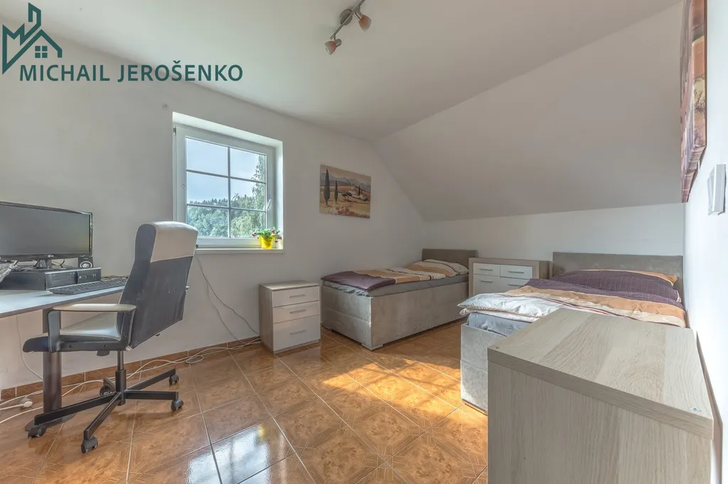 • patro: tři samostatné pokoje, koupelna s vanou i sprchovým koutem, další samostatná toaleta.