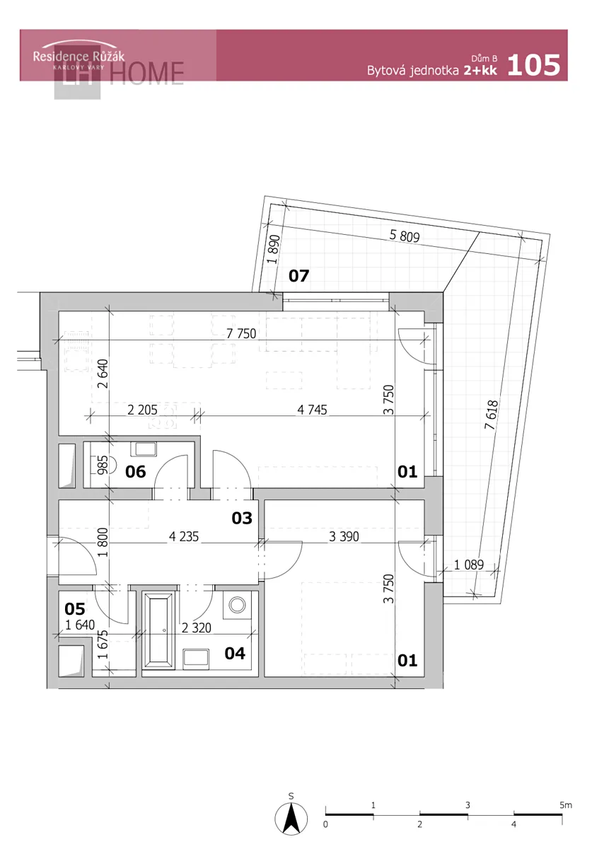 Nabízíme prodej bytu 2+kk - 60,06 m2 + terasa 18,53 m2 v 1. nadzemním patře budovy B.