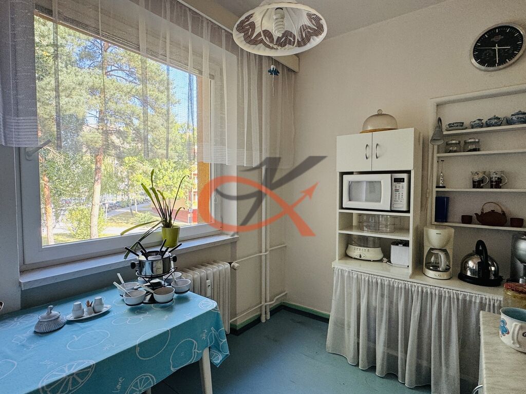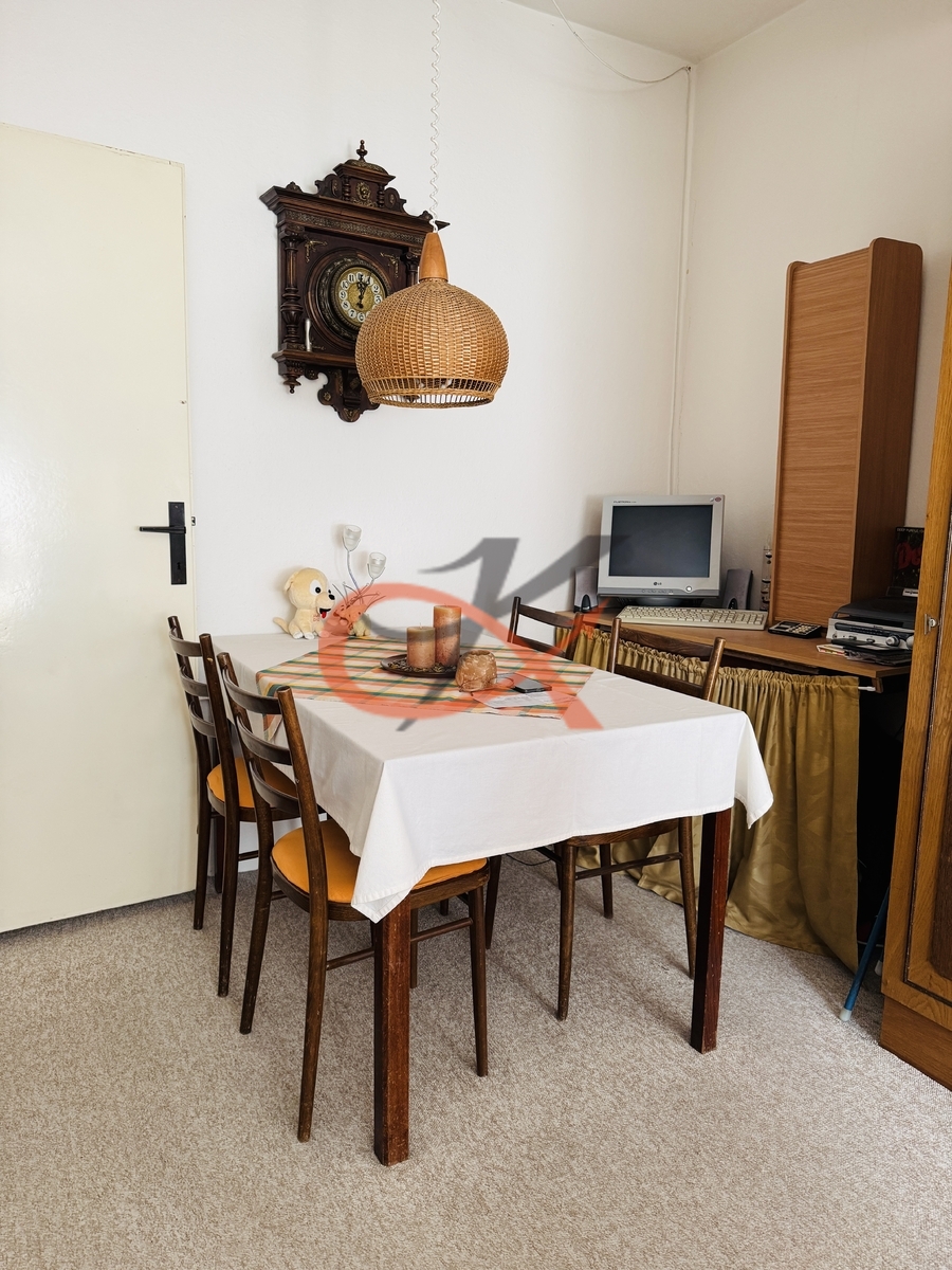 Dispozice bytu 3+1 o podlahové ploše 64m² skýtá mnoho možností, jak využít, upravit či změnit stávající prostor. PoJednotlivé pokoje jsou neprůchozí, kuchyně je natolik prostorná, že se do ní vejde jídelní kout, ze kterého je výhled na zeleň. Výhled do zeleně a klidové zóny je také z balkónu (4m²), na který je vstup z největšího pokoje s jihovýchodní orientaci. Jádro bytu je původní, takže lze jednoduše odstranit a nahradit zděnou příčkou a např. zvětšit prostor pro koupelnu a WC. Podlahy v pokojích jsou pokryté dřevěnými parketami, které jsou ve výborném stavu. Součástí bytu je také sklepní box na I.PP domu.