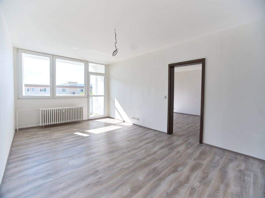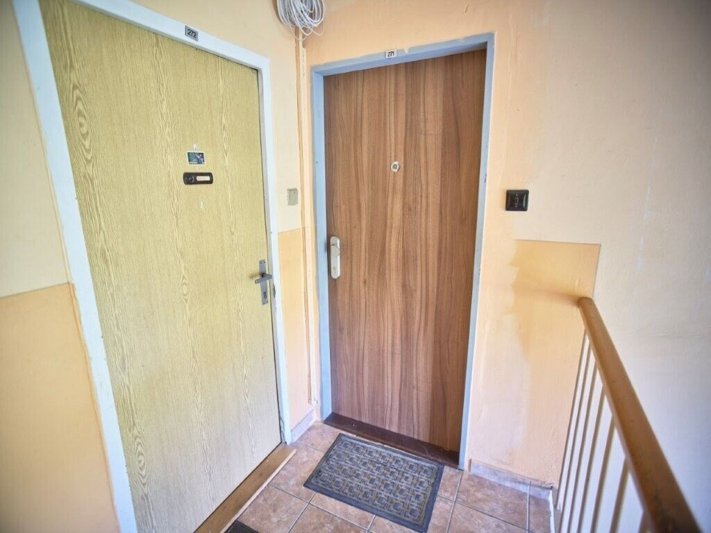 Dispozice: vstupní předsíň, koupelna s WC, kuchyně, obývací pokoj a dvě ložnice. Byt je ihned volný k nastěhování, bez nutnosti dalších investic.