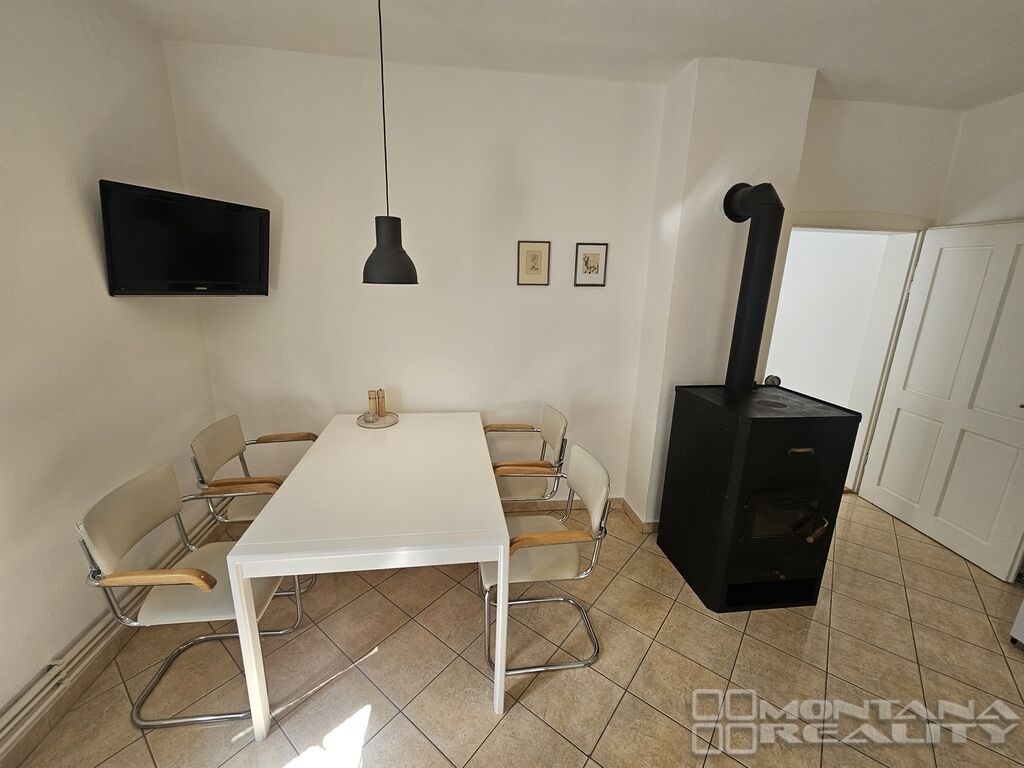 Vstup do domu přes prostorný průjezd, který je možno využít i k parkování auta. V přízemí domu se nachází předsíň, kuchyň s jídelnou, pokoj a koupelna se sprchovým koutem a toaletou. V patře domu se nachází obývací pokoj, dva pokoje a zákoutí, které je využíváno jako pracovna. Dále koupelna s vanou a toaletou.