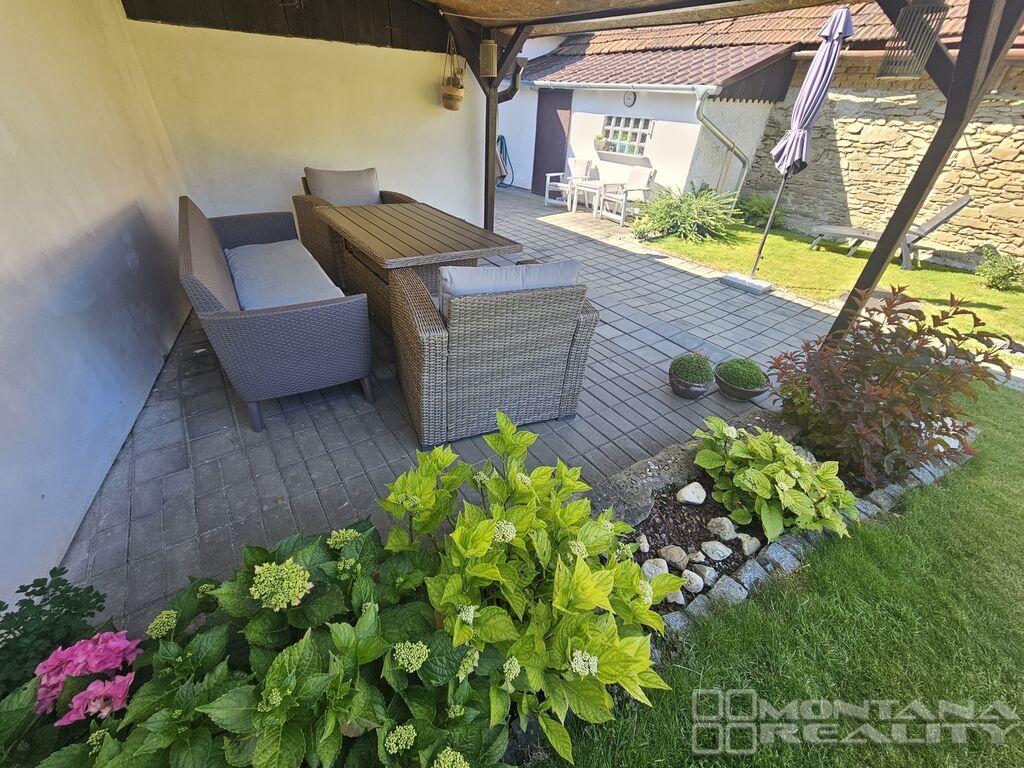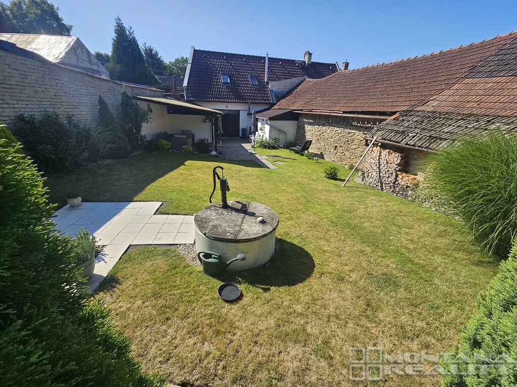 Průjezd domu navazuje na dvůr a zahradu. Na dvoře jsou dvě technické místnosti a pergola sloužící k posezení. Dále udržovaná zahrada, na které se nachází studna, zahradní domek se sklepem, udírna, dřevěná kůlna, skleník a spousta ovocných stromů.