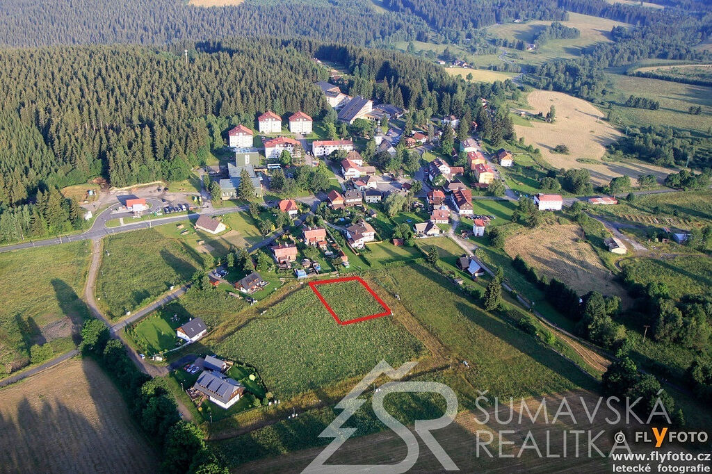 Pozemek se nachází na severovýchodním okraji obce, v blízkosti příjezdové komunikace od Sušice, v nadmořské výšce 860 m n. m. Nabízí nádherný výhled na šumavská panoramata – Antýgl, Oblík či Zelenou horu s vrcholy přes 1 200 m n. m.