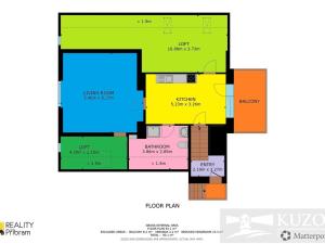 Celková výměra 118,8 m2, podlahová plocha 108,4 m2 (z toho 15,3 m2 plocha s výškou pod 1.5m). Měřeno technologií Matterport.